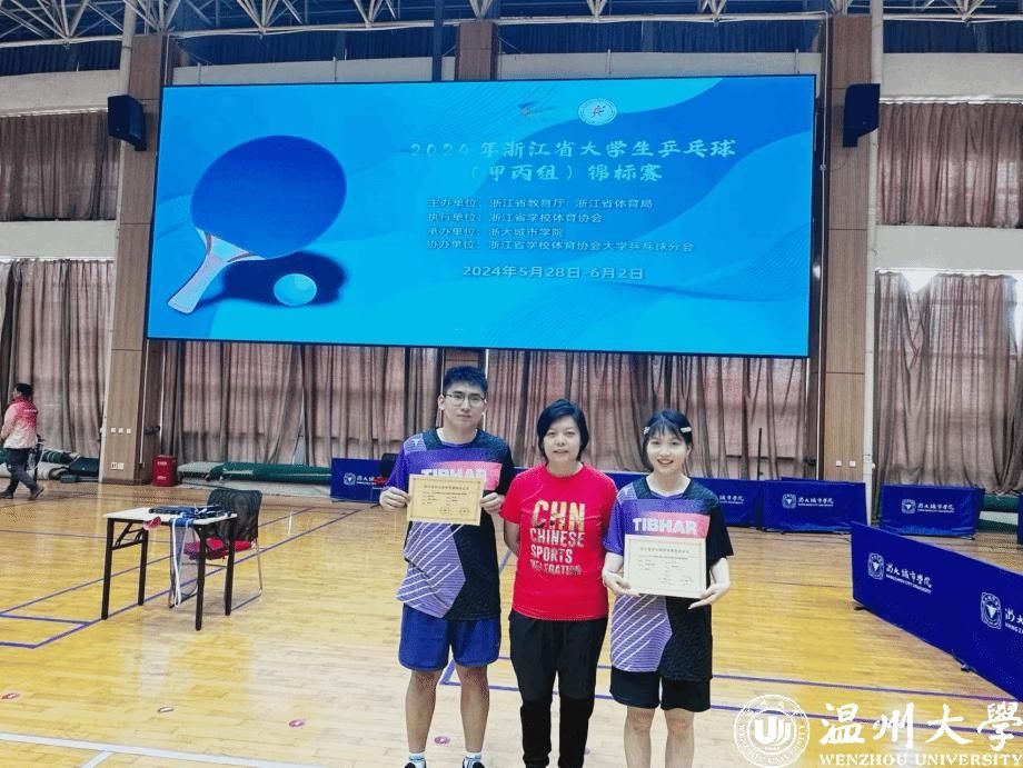 外国语学院队员周紫宸、机电学院队员张柏宁,力拼杭州电子科技大学、浙江农林大学,首次进入八强。在八进四的比赛中告负于浙江大学,最终战胜温州商学院,取得了甲组混合双打第五名的好成绩。法学院队员郑杰、体育与健康学院队员马钺荣获“优秀运动员”荣誉称号。