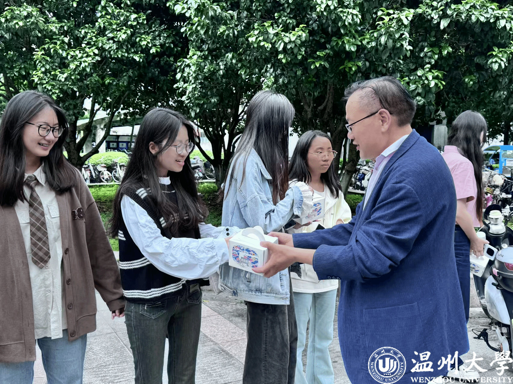据悉,该院每位同学将收到一盒粽子,每盒包含甜咸口味粽子各一个。值得一提的是,考虑到同学们南北饮食差异,今年的粽子是“咸粽党”和“甜粽党”的共同胜利,其中既有鲜肉鲜粽和豆沙蜜枣鲜粽的搭配,也有黄米酸奶粽和高汤鸡肉粽的搭配。同学们随机抽取“盲盒”,打开精致的包装,剥开一层、两层粽叶,粽香四溢,温暖的不仅是学子们的味蕾,更触动了他们的心弦。