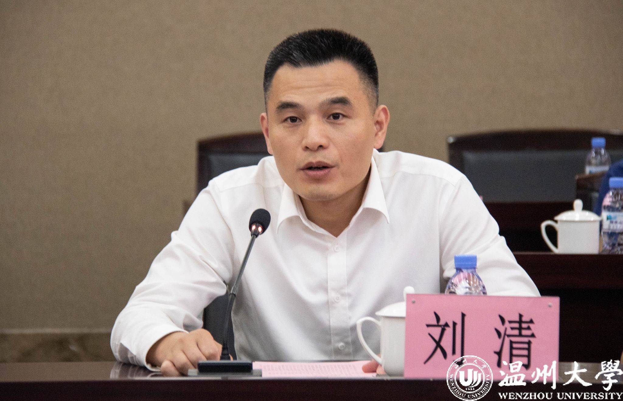 温州市委台办室务会议成员、二级调研员刘清致辞。他表示温州将致力于搭建更高层次的合作新平台,优化引商环境,鼓励和支持两岸企业在大健康产业中开展交流与合作,让台湾先进的理念和技术在温州落地生根,努力将温州打造成为两岸大健康产业、台企落地、人才聚集的新高地。
