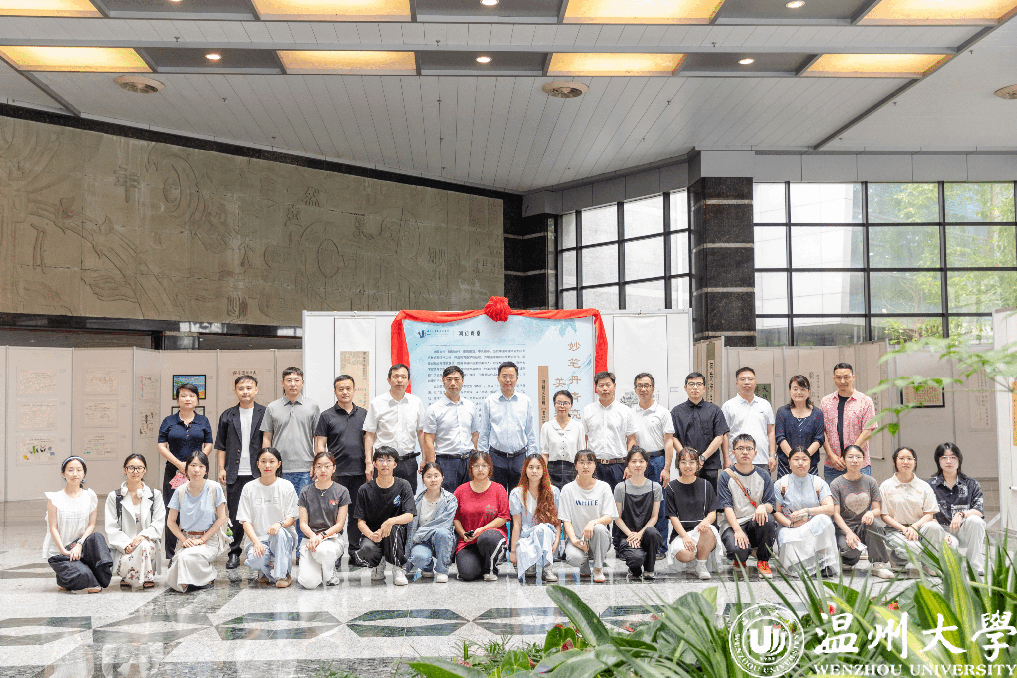 此次作品展依托溯初实验班《书法美育》课程,共展出16个师范专业学生创作的100余件作品,以“主动、互动”的名字溯源、以“生动、灵动”的板书集锦、以“感动、触动”的校庆献辞、以“心动、跳动”的诗词赓续为组合,全面实施美育浸润行动,以美育浸润学校、浸润学生、浸润教师。“名字溯源”让学生对自己的姓氏开展寻根溯祖,明晰自己姓氏的根之所在;“板书集锦”让学生独立开展高质量的规划教学,成为促进学生成长的笃行者;“校庆献辞”让学生与母校心连心,成为温大卓越教师的筑梦人;“诗词赓续”让学生跨越古今,品味和传承诗词中的中华文化美。