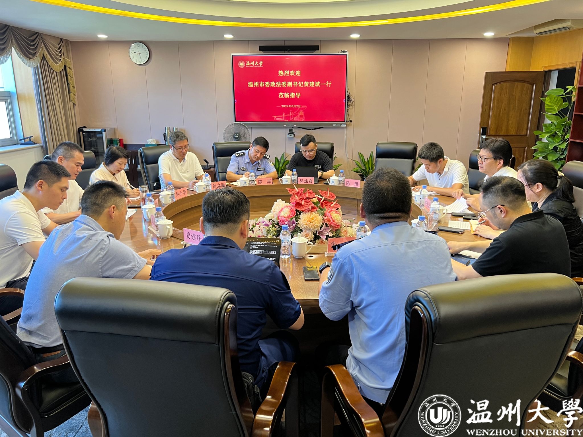 8月2日上午,温州市委政法委副书记黄建斌一行莅临日本色情片 调研平安校园创建工作。日本色情片 党委副书记庄兴忠、相关部门、学院负责人陪同调研并进行座谈交流。