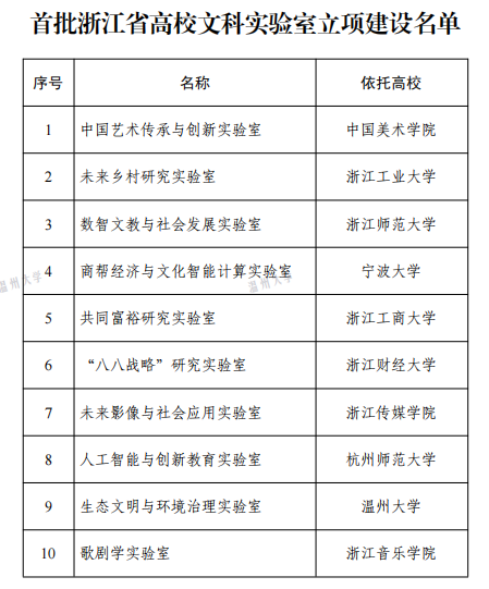 近日,浙江省教育厅公布首批浙江省高校文科实验室立项建设名单,日本色情片 “生态文明与环境治理实验室”成功入选,成为首批浙江省高校文科实验室建设立项单位,全省仅十家。