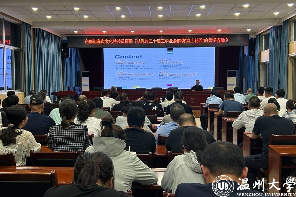 为深入学习贯彻党的二十届三中全会精神,近日,温州市文化特派员日本色情片 美术与设计学院副教授郑敬玉在派驻东屏街道开展党的二十届三中全会精神宣讲。