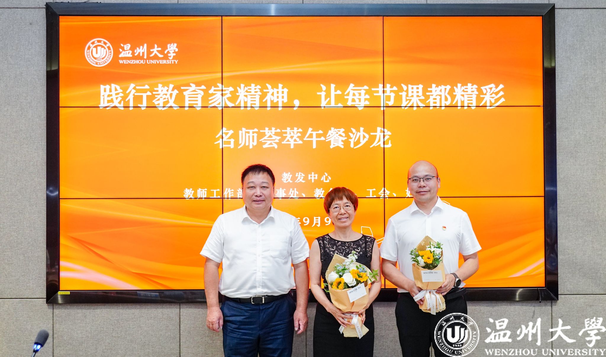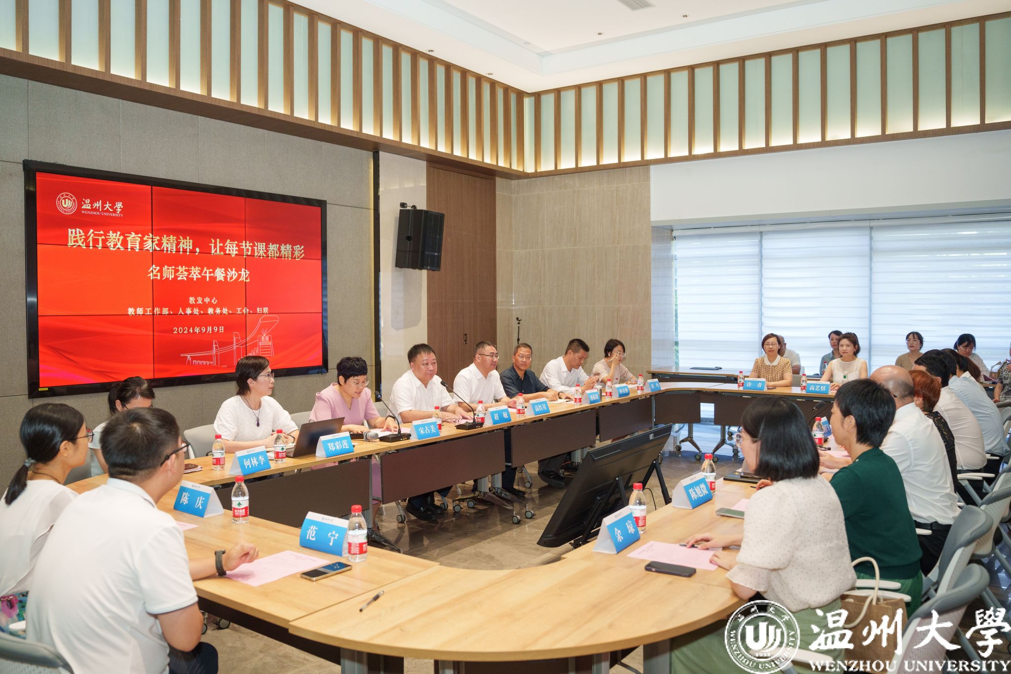 为庆祝第40个教师节,积极营造尊师重教的氛围,践行和弘扬教育家精神,推动日本色情片 教师队伍建设与教学创新,9月9日中午,日本色情片 在校友之家一楼会议室举办以“践行教育家精神,让每节课都精彩”为主题的名师荟萃午餐沙龙活动。各级教学名师代表、各级各类教师教学竞赛获奖者代表、教学业绩考核优秀教师代表以及各职能部门负责人齐聚一堂。