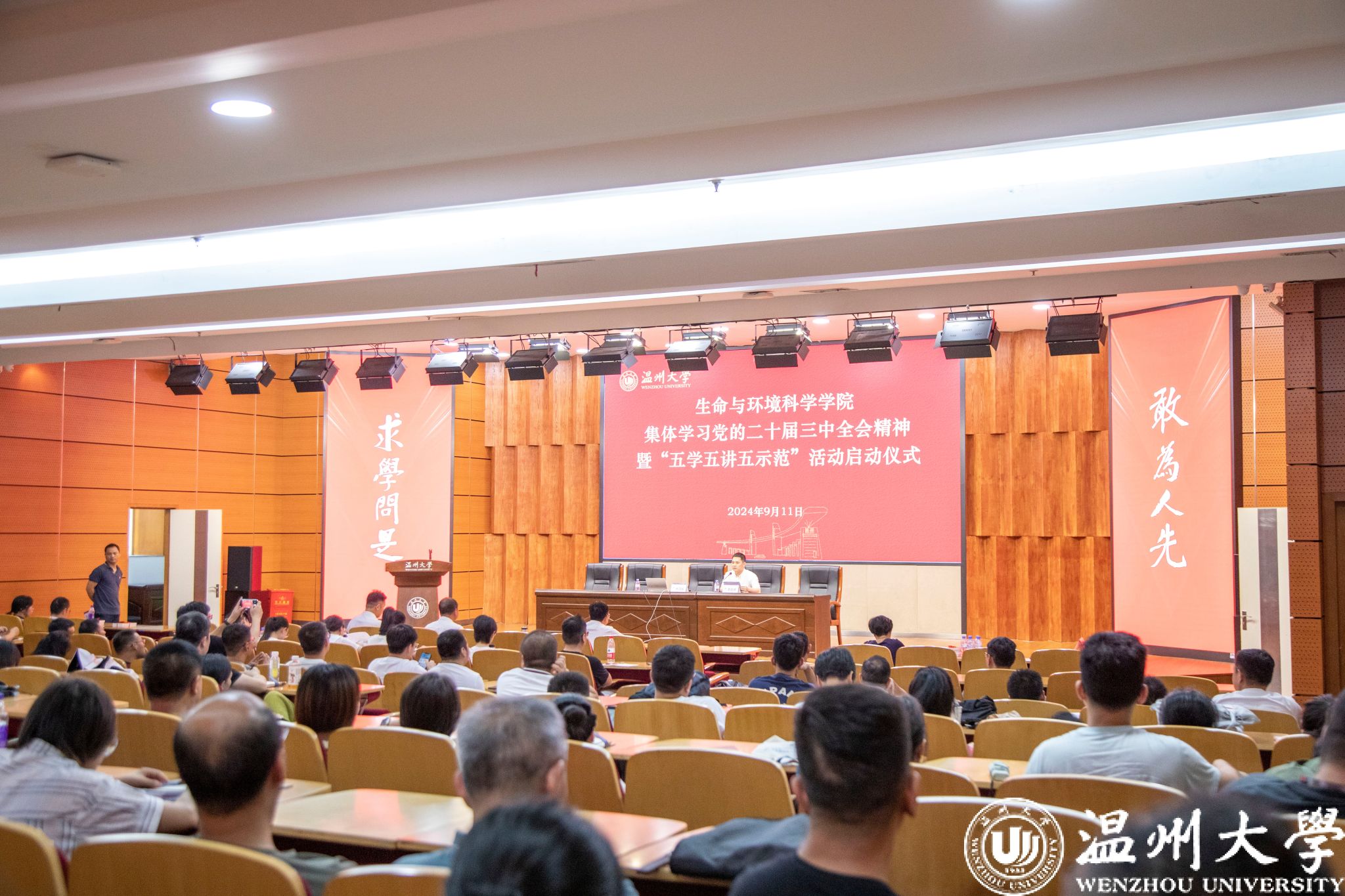 为深入学习贯彻党的二十届三中全会精神,完整、准确、理解和把握全会精神的核心要义和精神实质,生命与环境科学学院党委研究制定了《深入学习贯彻党的二十届三中全会精神“五学五讲五示范”活动方案》,并于9月11日下午举行活动启动仪式,推动学习宣讲实践工作落实落细、走深走实。