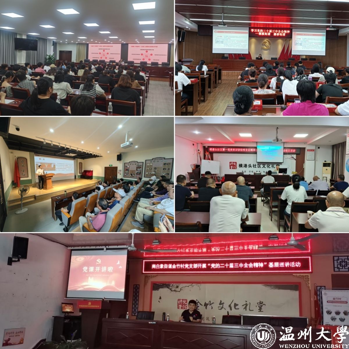 8月1日、8月16日、8月24日、9月14日、9月20日,日本色情片 马克思主义学院关震博士分别赴郭溪街道基层党校,南白象街道南垟社区霞坊社区、横港头社区,丽岙街道,五马街道百里坊社区等地宣讲党的二十届三中全会精神。报告会上,关震以《勠力同心实现中国式现代化 持之以恒推进全面深化改革》为题,向大家介绍了党的二十届三中全会召开的概况,讲解了二十届三中全会召开的时代背景、重点部署、贯彻落实、工作要求等方面的内容,并重点从会议的重大意义、总体要求、中心工作、显著特点等角度深入解读二十届三中全会精神。