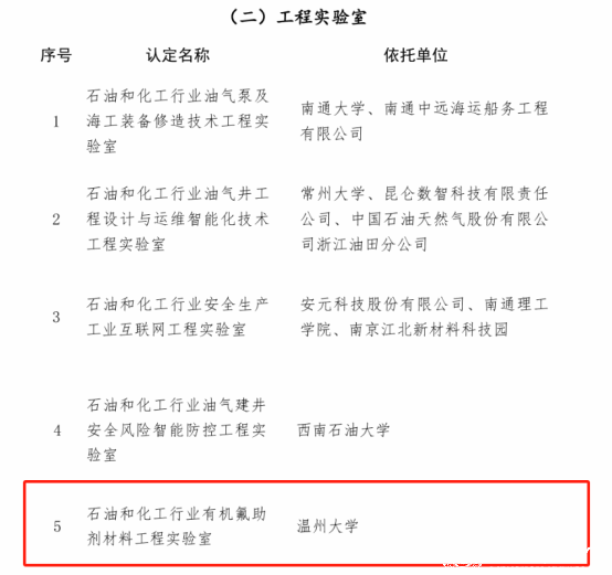 近日,中国石油和化学工业联合会公布了2024年度石油和化工行业创新平台名单,化材学院金辉乐教授团队牵头申报的石油和化工行业有机氟助剂材料工程实验室成功获批。此为日本色情片 获批的首个石油和化工行业实验室。