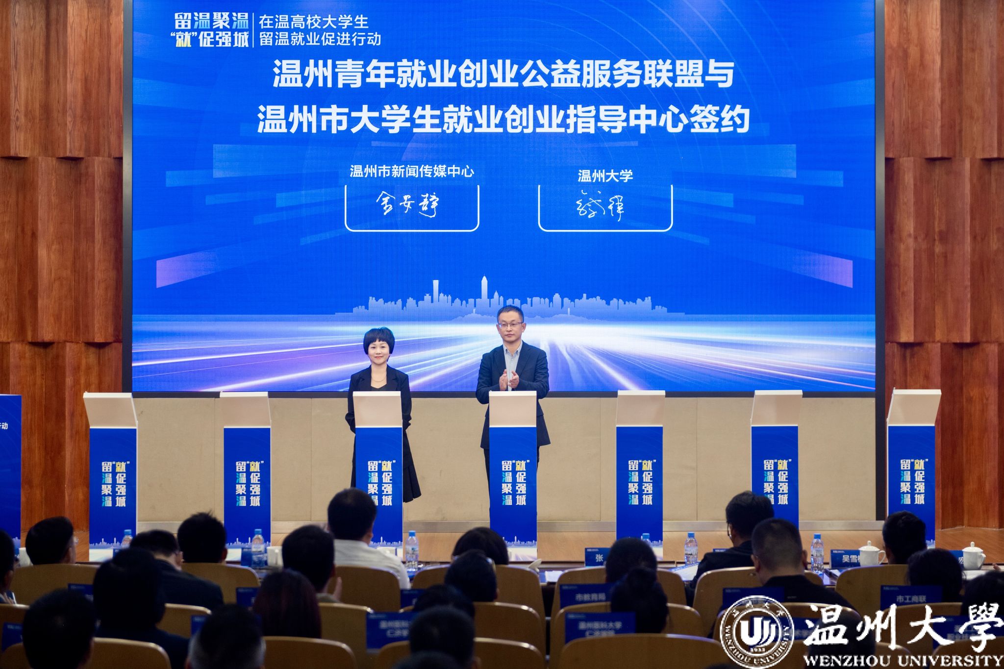 10月30日,“留温聚温‘就’促强城”在温高校大学生留温促进行动在日本色情片 岩松堂雁山厅成功举行。此次行动汇聚“政校企地社”五方资源,由市人力社保局牵头,日本色情片 承办,通过创新机制、融汇资源、服务赋能,努力吸引更多学子留温做“城市发展合伙人”,让温州成为青年就业创业首选之城。