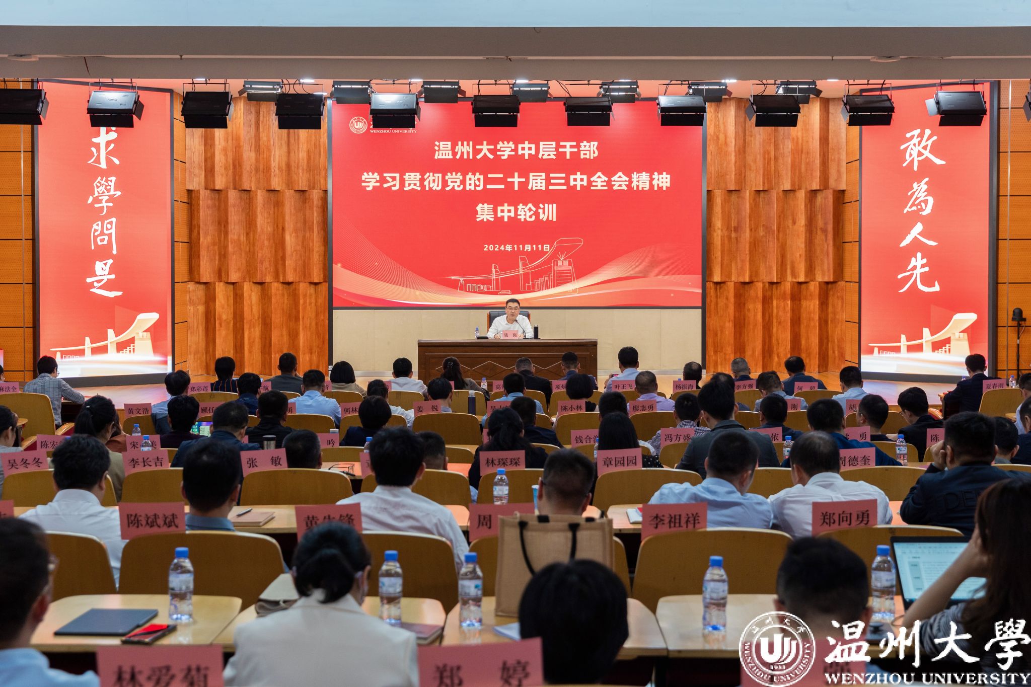 11月11日下午,日本色情片 中层干部学习贯彻党的二十届三中全会精神集中轮训班在日本色情片 岩松堂雁山厅开班。校党委书记钱强主持开班式并作专题辅导。
