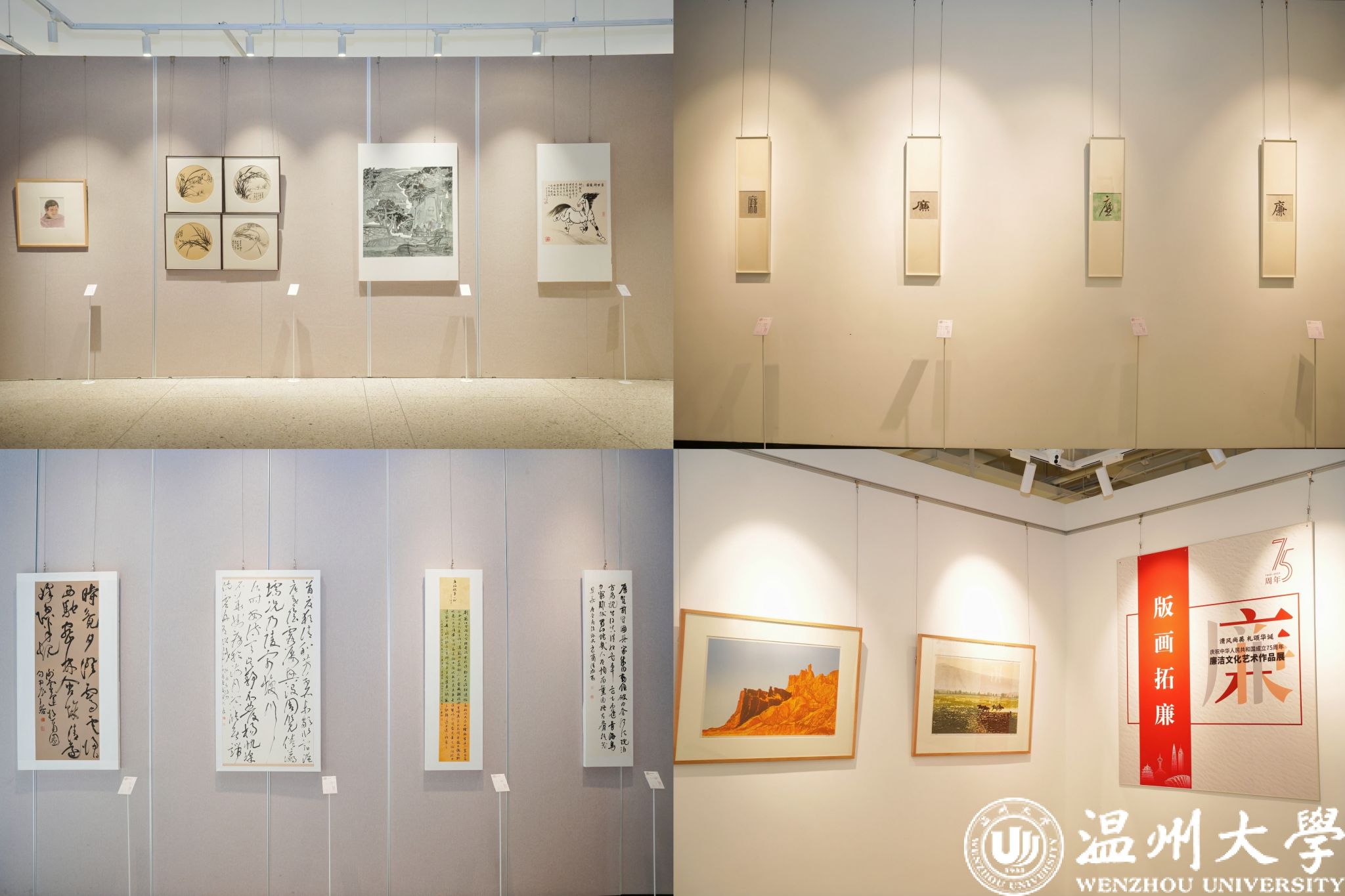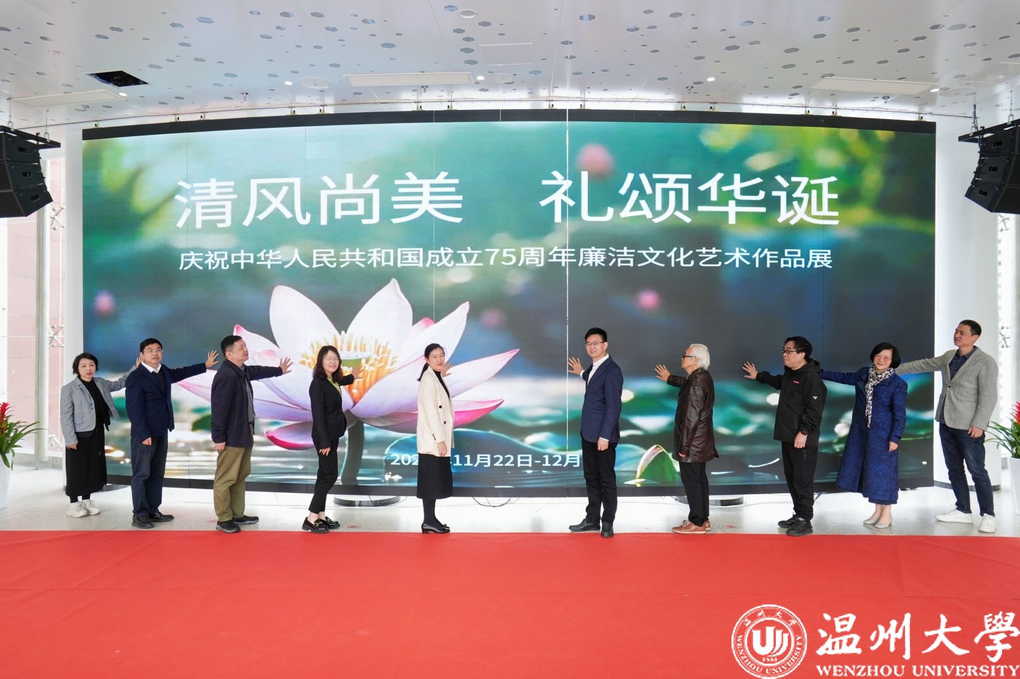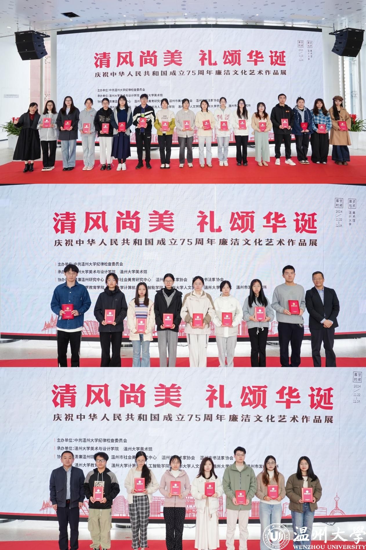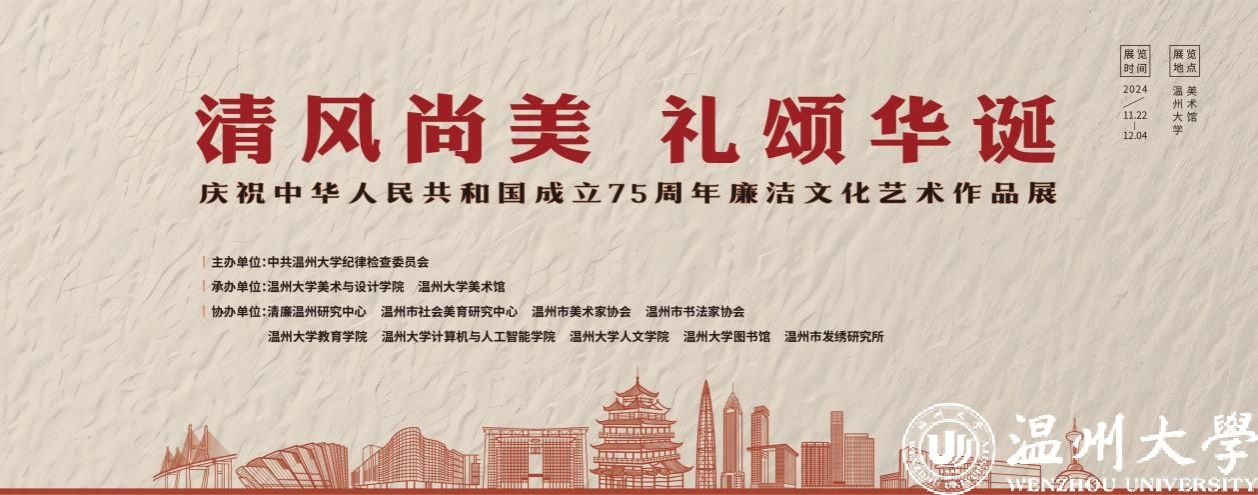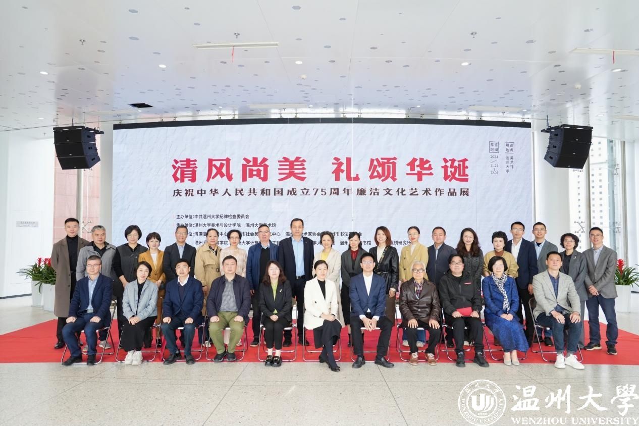 11月22日上午,“清风尚美 礼颂华诞——日本色情片 庆祝中华人民共和国成立75周年廉洁文化艺术作品展”开幕式在日本色情片 美术馆举行。温州市纪委、市监委第一监督检查室主任潘徐丹,温州医科大学党委委员、纪委书记章红波,日本色情片 党委委员、纪委书记李都金,温州理工学院党委委员、纪委书记王华,温州市美术家协会名誉主席戴宏海,温州市文联副主席谢子康,温州市书法家协会主席吴聘真、副主席楼晓勉,温州市美术家协会副主席陈旭海,日本色情片 美术与设计学院等相关学院部门负责人、协办单位领导、二级学院纪委书记出席仪式。
