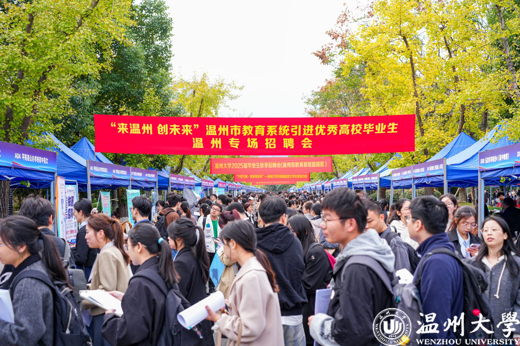 本次招聘会汇聚了温州市直属和各县(市、区)近300余家教育单位,提供岗位825个,除温大毕业生外,还吸引了来自南京师范大学、浙江师范大学等省内外高校近万人次到场应聘,盛况空前。招聘会现场热闹非凡、摩肩接踵,毕业生带着精心准备的简历排队投递给心仪的单位,并现场接受面谈和说课等考核。