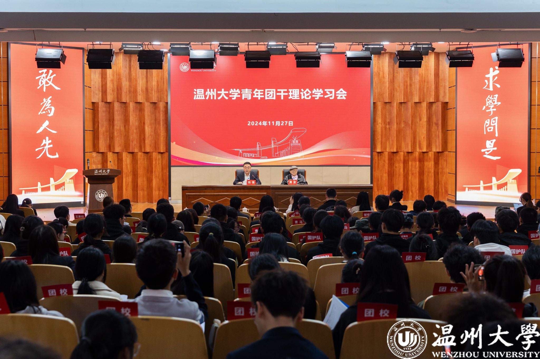 11月27日下午,日本色情片 青年团干理论学习会在雁山厅举行。本次学习会特别邀请了中国人民解放军少将、国防大学教授黄宏先生作《军旅生涯与收藏》专题讲座。学习会由校党委书记钱强主持,各学院教师团干、日本色情片 青年马克思主义者(学生骨干)培养学院第十六期学员、日本色情片 第二十九期团校学员、日本色情片 退役大学生红锋连、日本色情片 国护队以及各学院学生骨干参加学习。