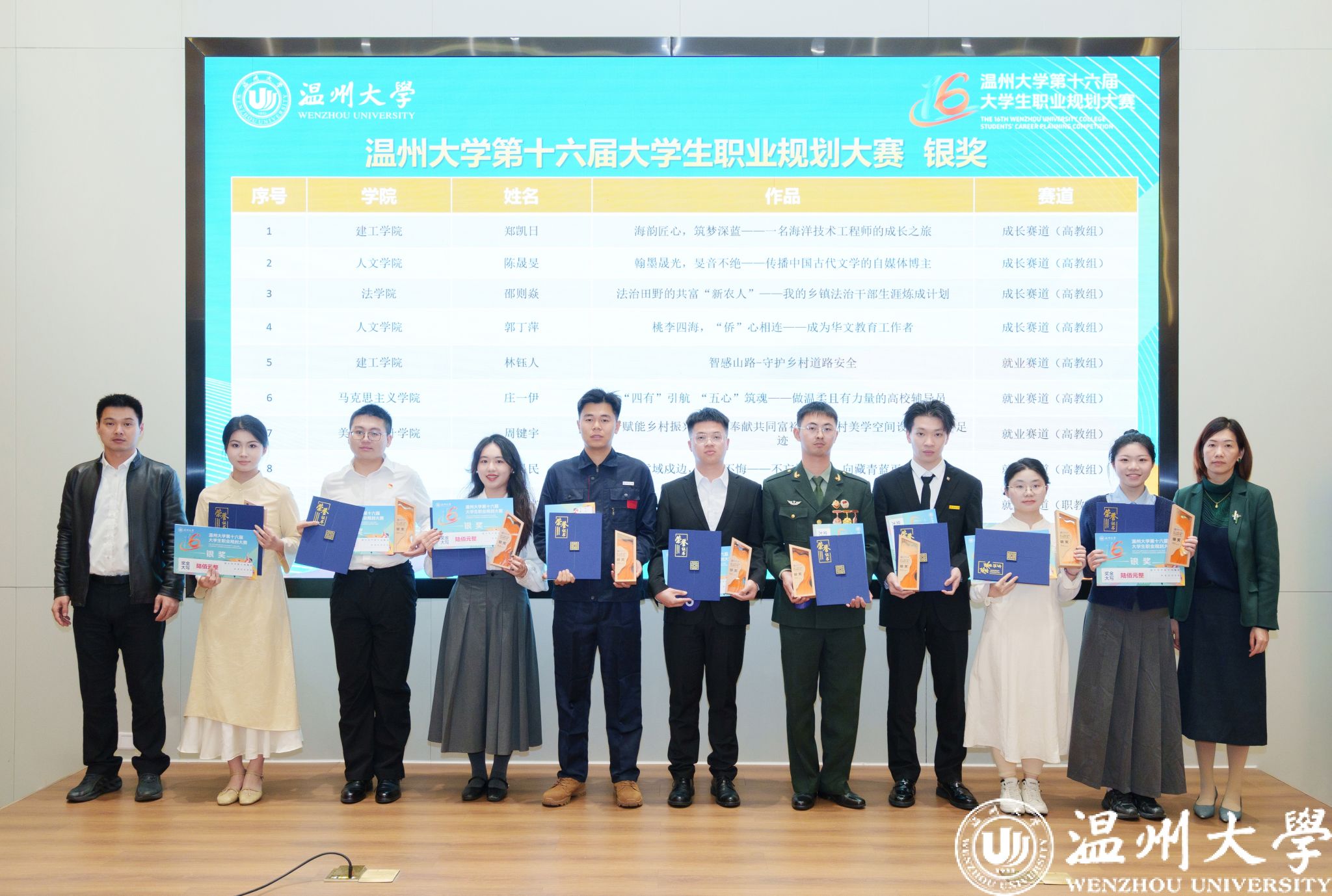 最终,经过选手现场展示、评委提问、专家点评等环节,《寻根华夏,传文四海——一名儿童华文教师的成长之旅》等6个作品获得金奖;《海韵匠心,筑梦深蓝——一名海洋技术工程师的成长之旅》等9个作品获得银奖;《“以武润心、培根筑魂”——做一名传统体育方向的小学体育教师》等15个作品获得铜奖;付睿等6位老师获评为“优秀指导教师”;马克思主义学院等6个学院获得“优秀组织奖”。