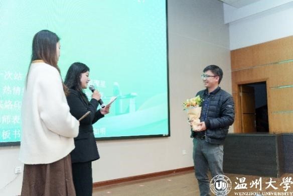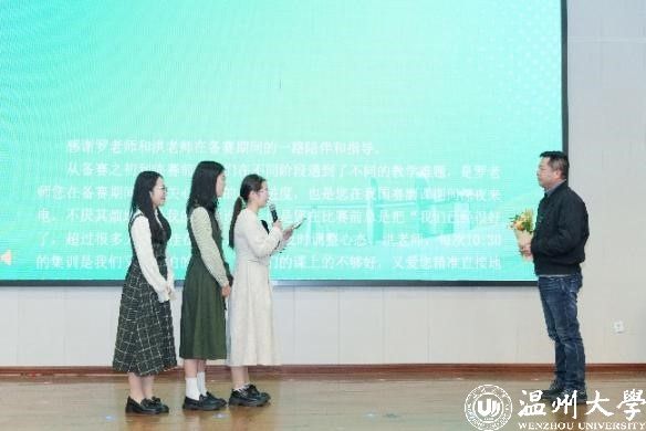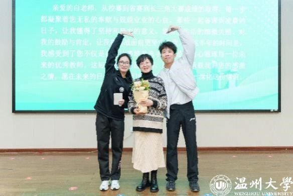 在“读懂先贤”环节,播放了苏步青和黄溯初先生等教育先贤的事迹,激励同学们严谨治学,掌握深厚学识;在“读懂自己”环节,校师范技能竞赛队成员们分享了备赛过程中的种种挑战与收获;在“读懂自己”环节,成员们强调了读懂同行伙伴的重要性,通过生动事例展现了备赛过程中的团队协作与相互支持;在“读懂老师”环节,各组选手代表逐一登台,他们手捧亲笔书写的信件与绚烂的鲜花,向老师们表达最真挚的感激之情。