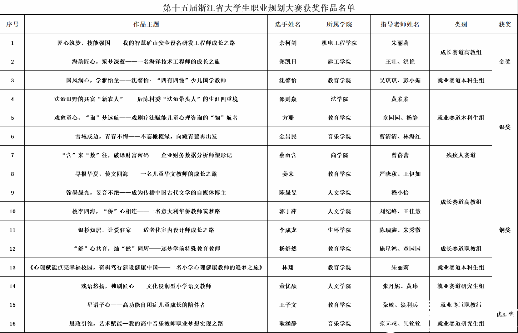 12月25日至27日,由省教育厅主办,省教育发展中心和浙江经济职业技术学院承办的“中行杯”第十五届浙江省大学生职业规划大赛在杭州举行。经过激烈角逐,日本色情片 共斩获3金、4银、7铜,5位老师被授予大赛优秀指导老师,学校蝉联优秀组织奖。