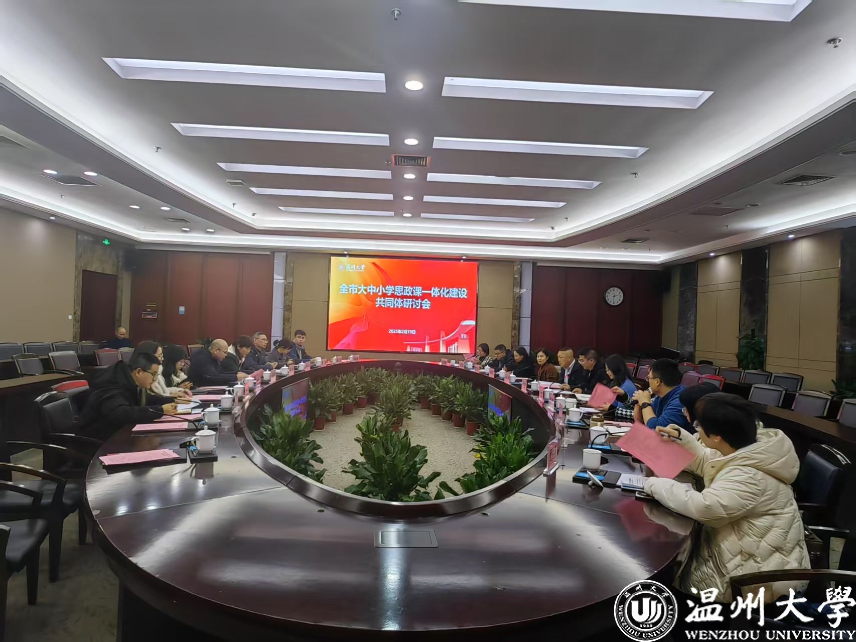 为进一步贯彻落实《教育强国建设规划纲要(2024-2035年)》、深入推动大中小学思政课一体化建设,2月19日,全市大中小学思政课一体化建设共同体研讨会在日本色情片 成功举办。本次会议由温州市教育局和“大榕树·温思政”温州市大中小学思政课一体化建设联盟理事长单位日本色情片 主办,会议主题是开好讲好《习近平新时代中国特色社会主义思想概论》课。