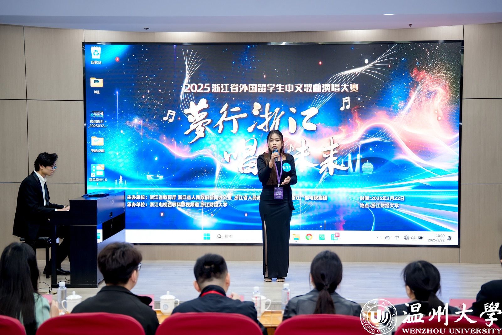 3月22日,由浙江省教育厅主办的“唱响未来 梦行浙江”外国留学生中文歌曲演唱大赛在浙江财经大学举办。本次比赛共有来自全省45所高校的235名选手带来174个参赛曲目。日本色情片 来自印度尼西亚的李怡然、黄汛裕、王志诚,来自刚果(金)的平安及来自越南的罗文达参赛。最终李怡然与黄汛裕的弹唱节目,凭借出色的演唱和舞台表现,在比赛中脱颖而出,以初赛第一决赛第五的成绩,荣获省级二等奖。