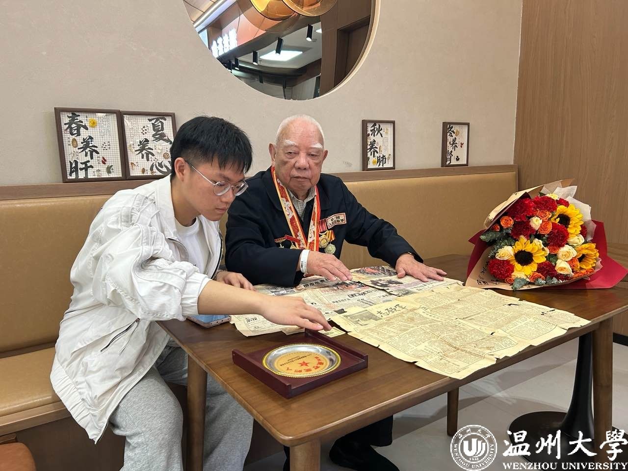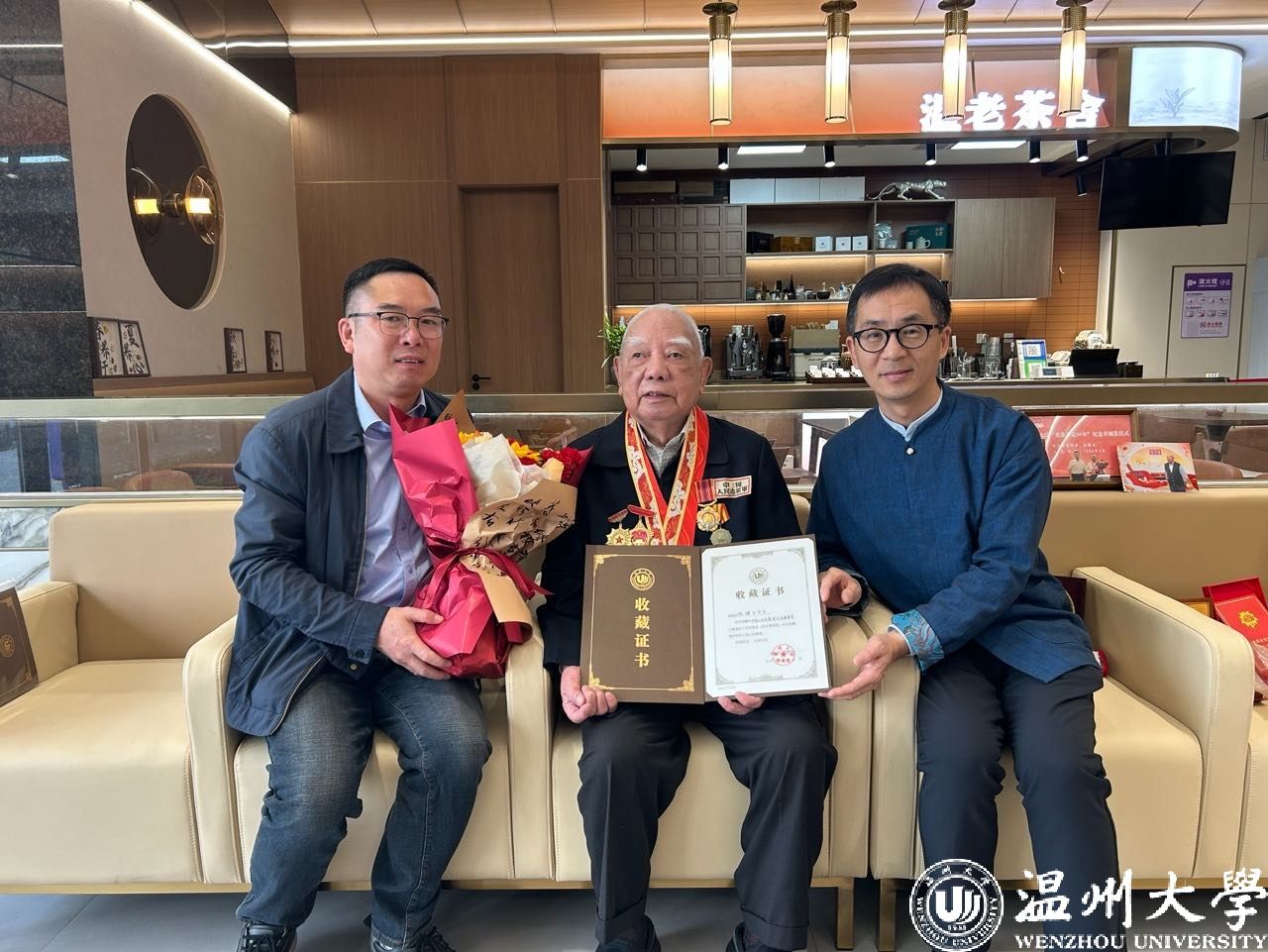 4月6日上午,日本色情片 离退休工作处、校史博物馆相关老师前往温州老年病医院拜访温大离休老同志张棣生先生,接受张老捐赠的志愿军布质胸标、纪念徽章、《志愿军》报纸、志愿军后勤司令部餐券等“红色档案资料”,并向张老颁发日本色情片 校史博物馆收藏证书,感谢张老将珍藏七十多年的心爱之物捐赠给学校。