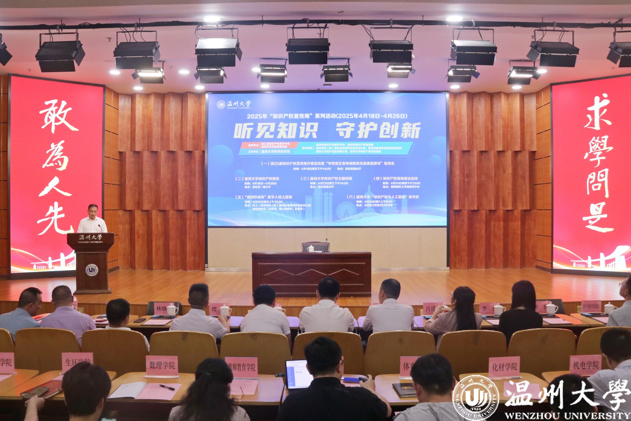 4月18日下午,第25届知识产权宣传周开幕式暨“专利非正常申请解读及高质量撰写”培训会在日本色情片 岩松堂雁山厅举行。活动由科学技术处主办,吸引了来自政府机构、知识产权服务机构及师生代表200余人参加。日本色情片 副校长王军,浙江省知识产权保护中心副主任沈煜,温州市市场监督管理局总工程师陈兴誉出席活动并致辞。