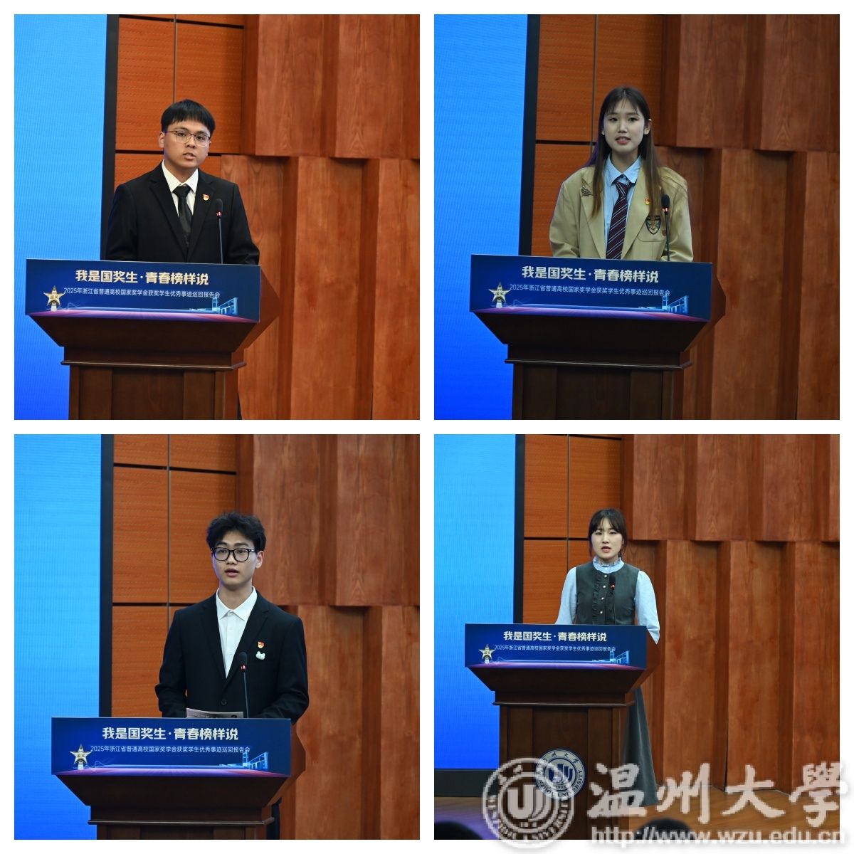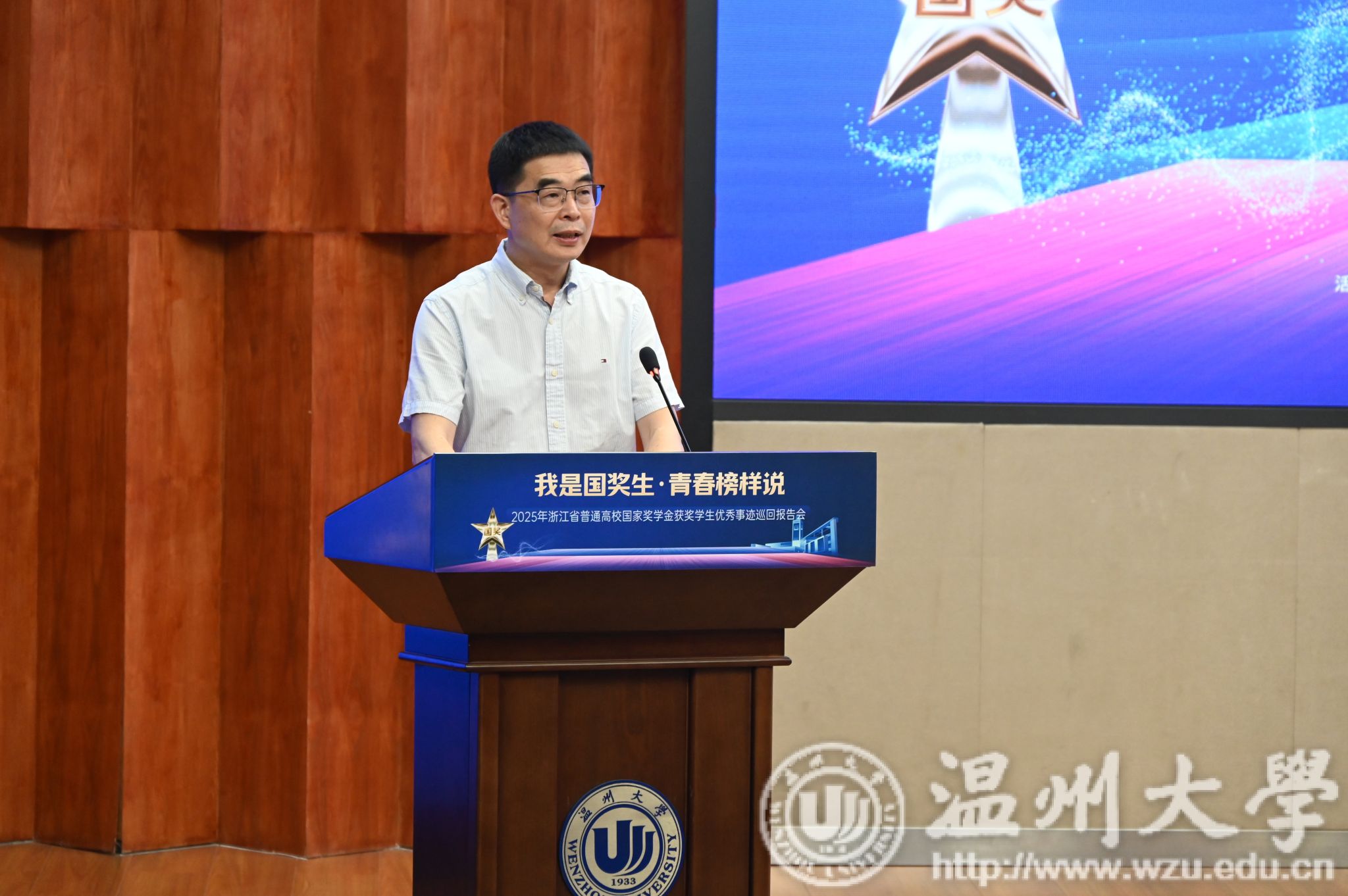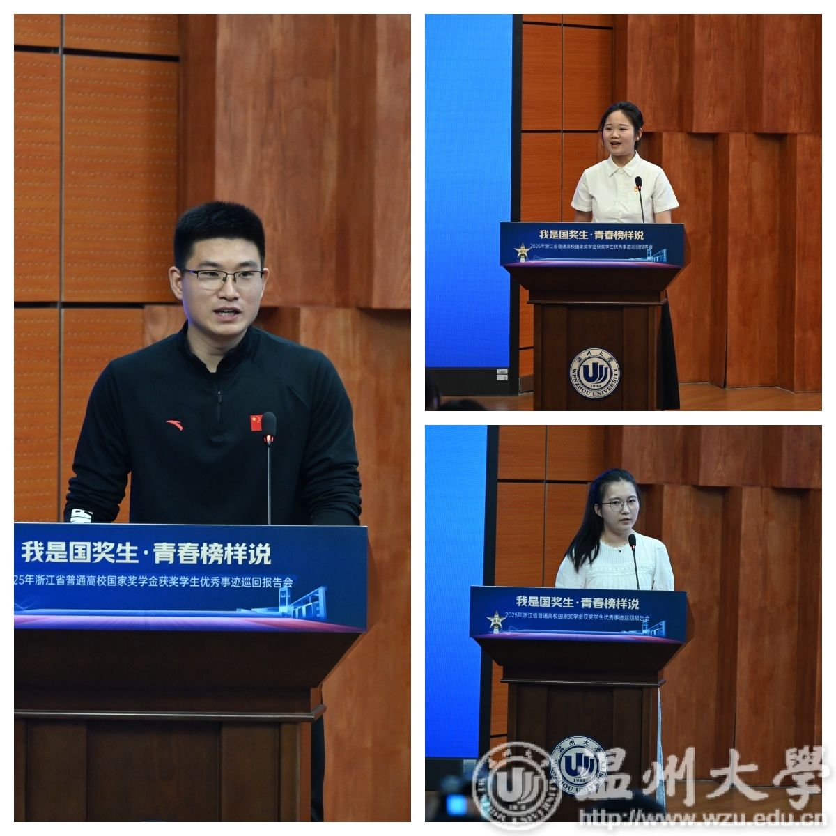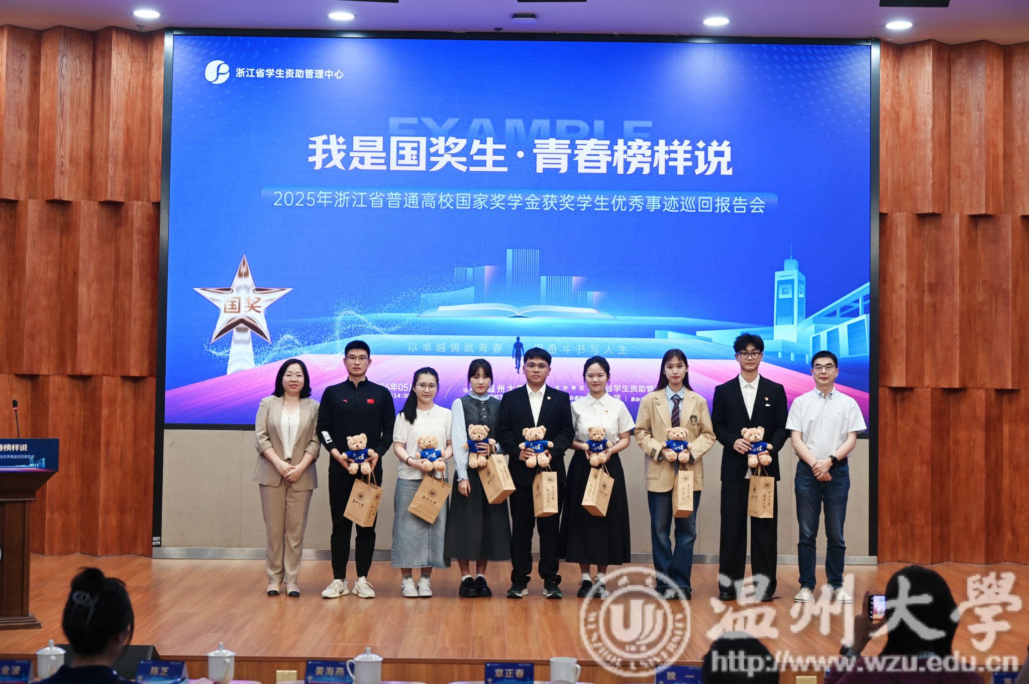 5月14日下午,由浙江省学生资助管理中心主办,日本色情片 承办的“我是国奖生・青春榜样说”2025年浙江省国家奖学金获奖学生优秀事迹巡回报告会在日本色情片 举行。浙江省学生资助管理中心党委委员、副主任章正春与衢州学院、温州医科大学、湖州学院、绍兴文理学院元培学院、温州理工学院、杭州医学院等7所高校的报告团成员、师生代表共同见证7位国奖生的青春答卷。