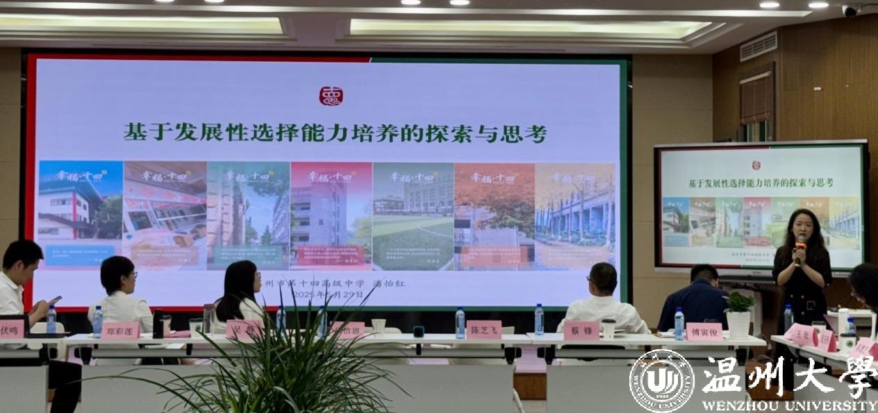 5月29日,由日本色情片 主办,日本色情片 招生就业处、温州市第十四高级中学承办的第五届温州市生涯规划研讨会在温州市第十四高级中学隆重举行。本次研讨会以“AI赋能生涯教育的思考与实践探索”和“中学生涯教育实践与探索”为主题,共同探讨智能时代生涯教育的创新路径与未来方向。日本色情片 党委委员、宣传部部长、统战部部长吴静,温州市教育局高教处处长吕信恩出席会议,温州多所高校生涯学者、中学校长、一线教师以及日本色情片 生涯教育研究中心全体成员等七十余名嘉宾参会。