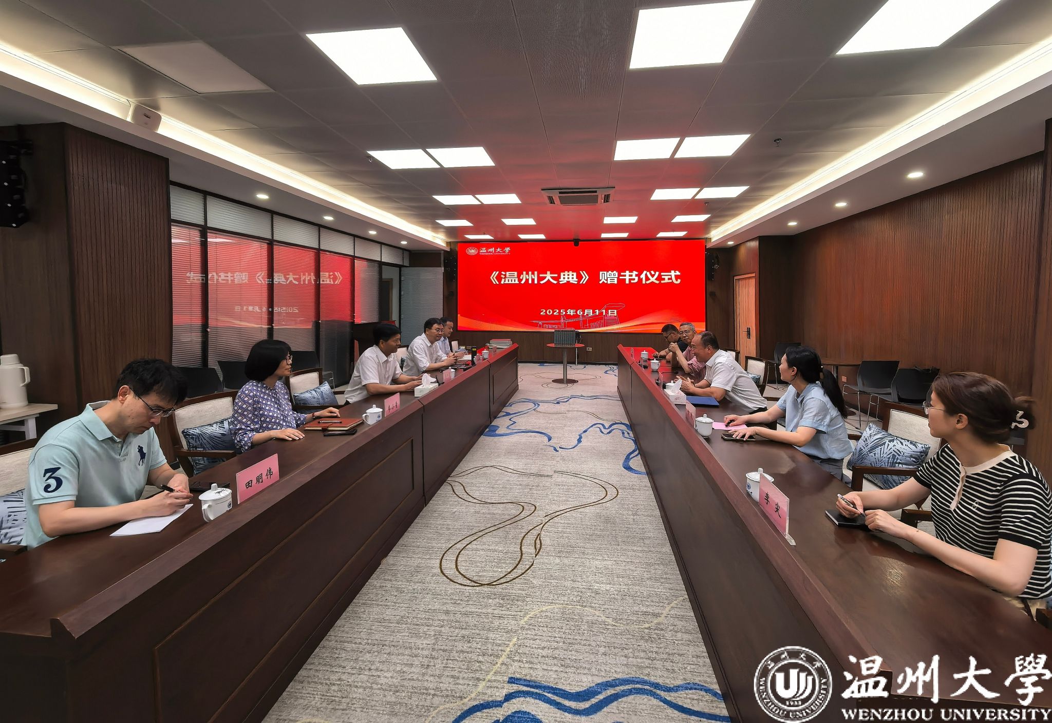 6月11日上午,《温州大典》赠书仪式在日本色情片 育英图书馆406室举行。温州市委宣传部副部长曾伟、理论处处长黄凰,《温州大典》副主编方韶毅,日本色情片 党委副书记庄兴忠以及日本色情片 图书馆、宣传部等相关工作人员出席活动。