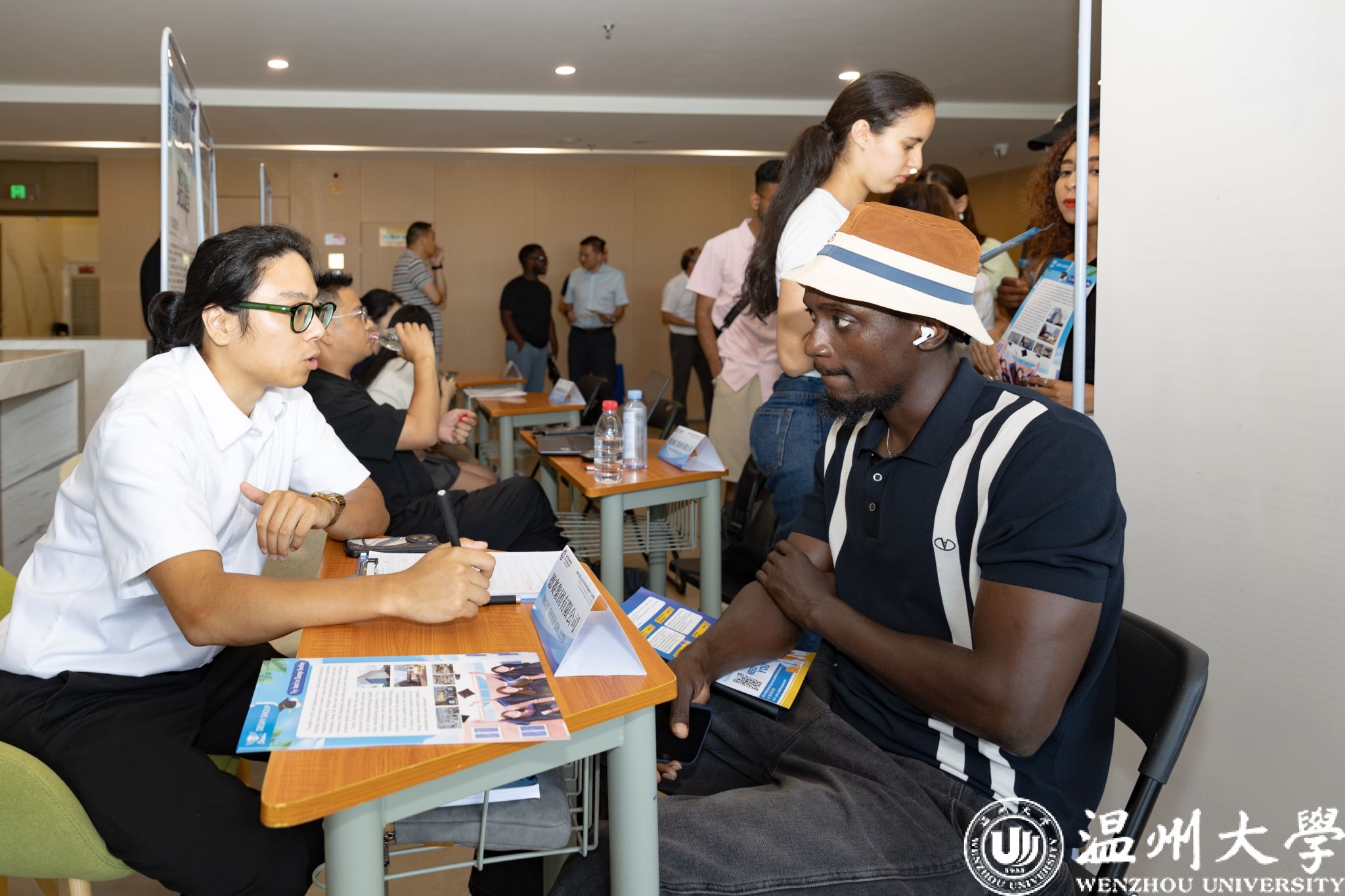 6月18日下午,日本色情片 国际人才校企合作对接会暨第4届国际学生专场招聘会在日本色情片 南校区科技综合大楼305举办。本次活动由日本色情片 国际日本色情片 与瓯海区商务局联合主办,温州市瓯海区委组织部(人才办)、温州市瓯海区人社局、温州市瓯海区经信局、温州市海外传播中心、温州市鹿城区公安分局出入境管理大队协办,吸引了来自津巴布韦、俄罗斯、泰国等30多个国家的100余名国际学生参加,德赛、嘉伟、东田、蔚蓝、宝通等十余家行业龙头企业参展,政企校三方齐聚一堂,为国际人才留温发展搭建优质平台,共绘产才融合新图景。