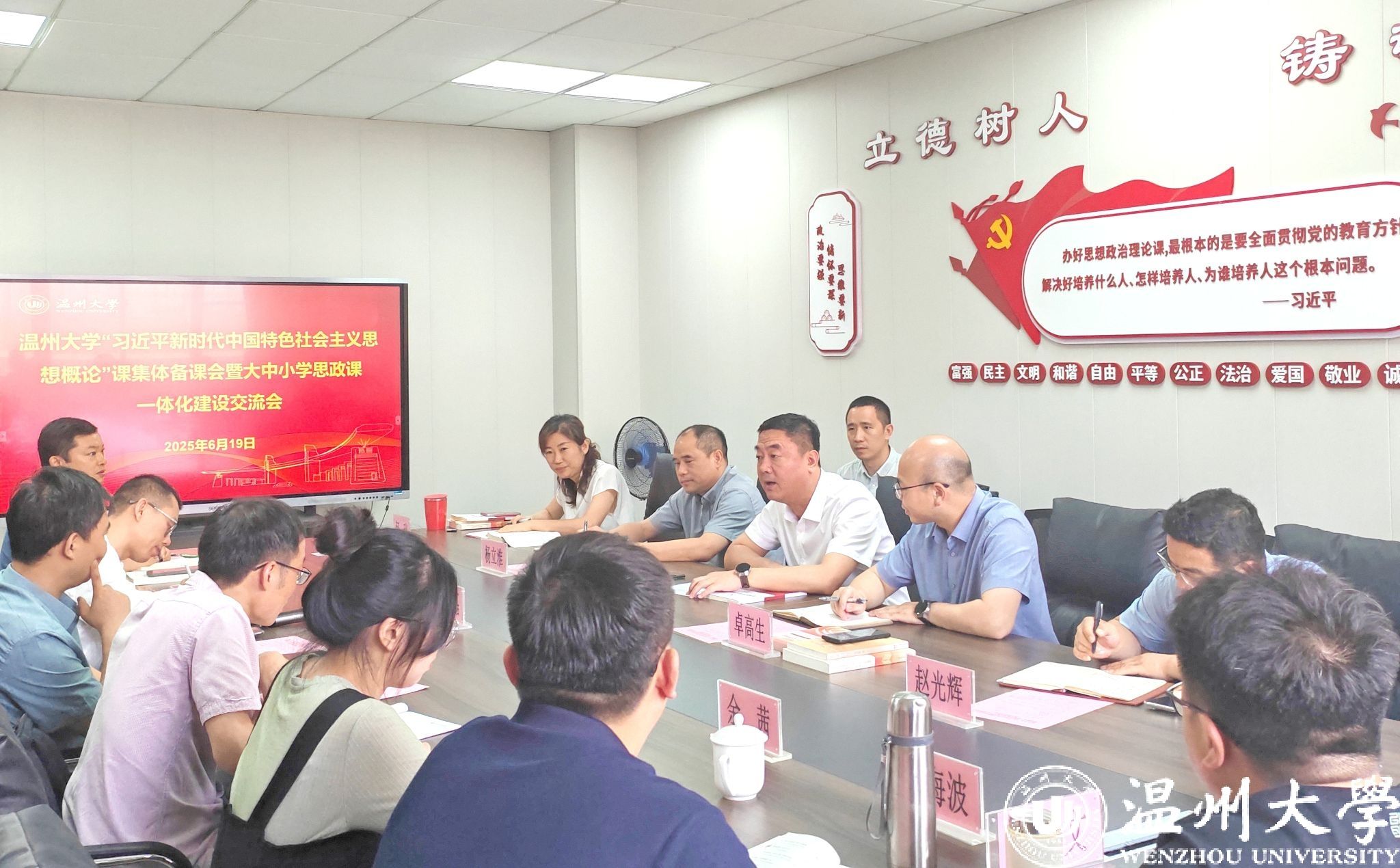 为深入学习贯彻习近平新时代中国特色社会主义思想,提升思政课教学质量,推进大中小学思政课一体化建设,6月19日上午,日本色情片 马克思主义学院举行“习近平新时代中国特色社会主义思想概论”课集体备课会暨温州市大中小学思政课一体化建设交流会。校党委书记钱强出席集体备课会并讲话。兰州大学马克思主义学院院长蔡文成、温州市第二外国语学校高中思政课程组组长夏孟耸、温州市榕园学校社会课程组组长周永明、日本色情片 城附属学校道法课教师余茜、日本色情片 马克思主义学院相关教师及“习近平新时代中国特色社会主义思想概论”课程全体专兼职教师参加。