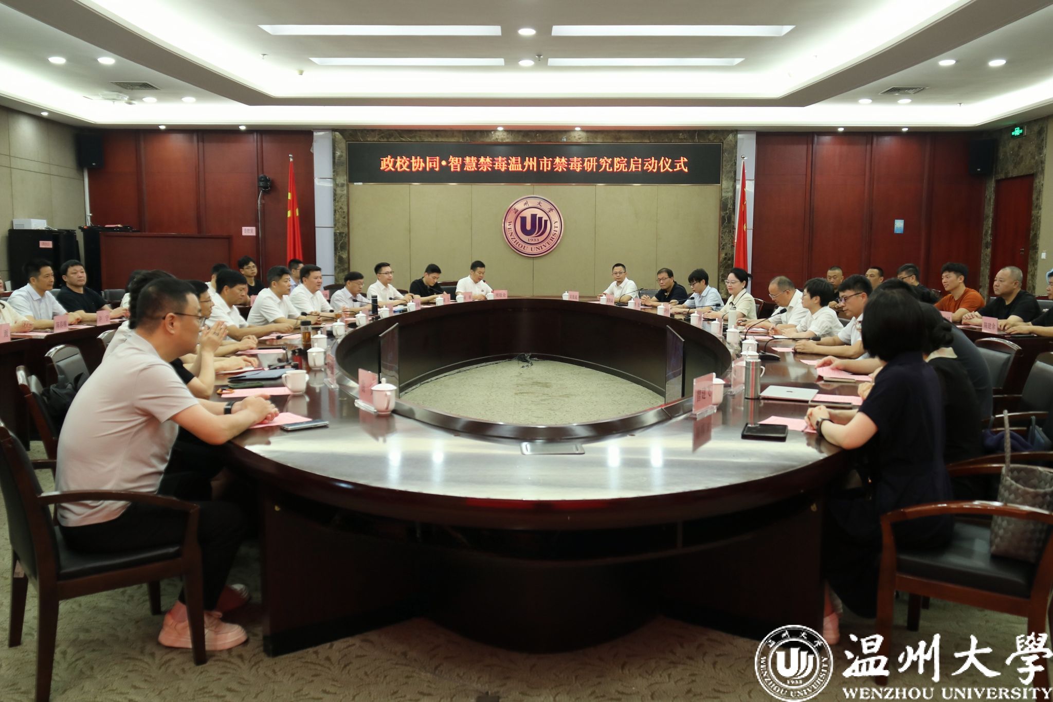 梅传强致辞。希望温州市禁毒研究院针对禁毒领域的基础理论问题、实践难点问题和区域特点问题展开研究,形成一批高质量的理论研究成果。整合研究团队力量,以科研反哺教学;提升社会服务功能,组建社会服务团队,有效发动全社会力量参与禁毒工作,努力打造省内领先、全国一流的综合性禁毒智库研究基地。
