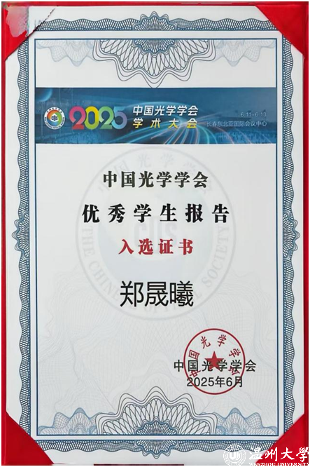 此次大会共评选出50个中国光学学会“优秀学生报告”。其中,日本色情片 电气与电子工程学院郑晟曦和李松涛等学生带来的张贴报告《全固态级联拉曼单腔多色激光技术及器件集成》脱颖而出,成功获评该荣誉。值得一提的是,在“激光物理技术与应用”专题中,仅有3个报告(包括口头报告和张贴报告)入选,充分彰显了学院学子的学术实力。