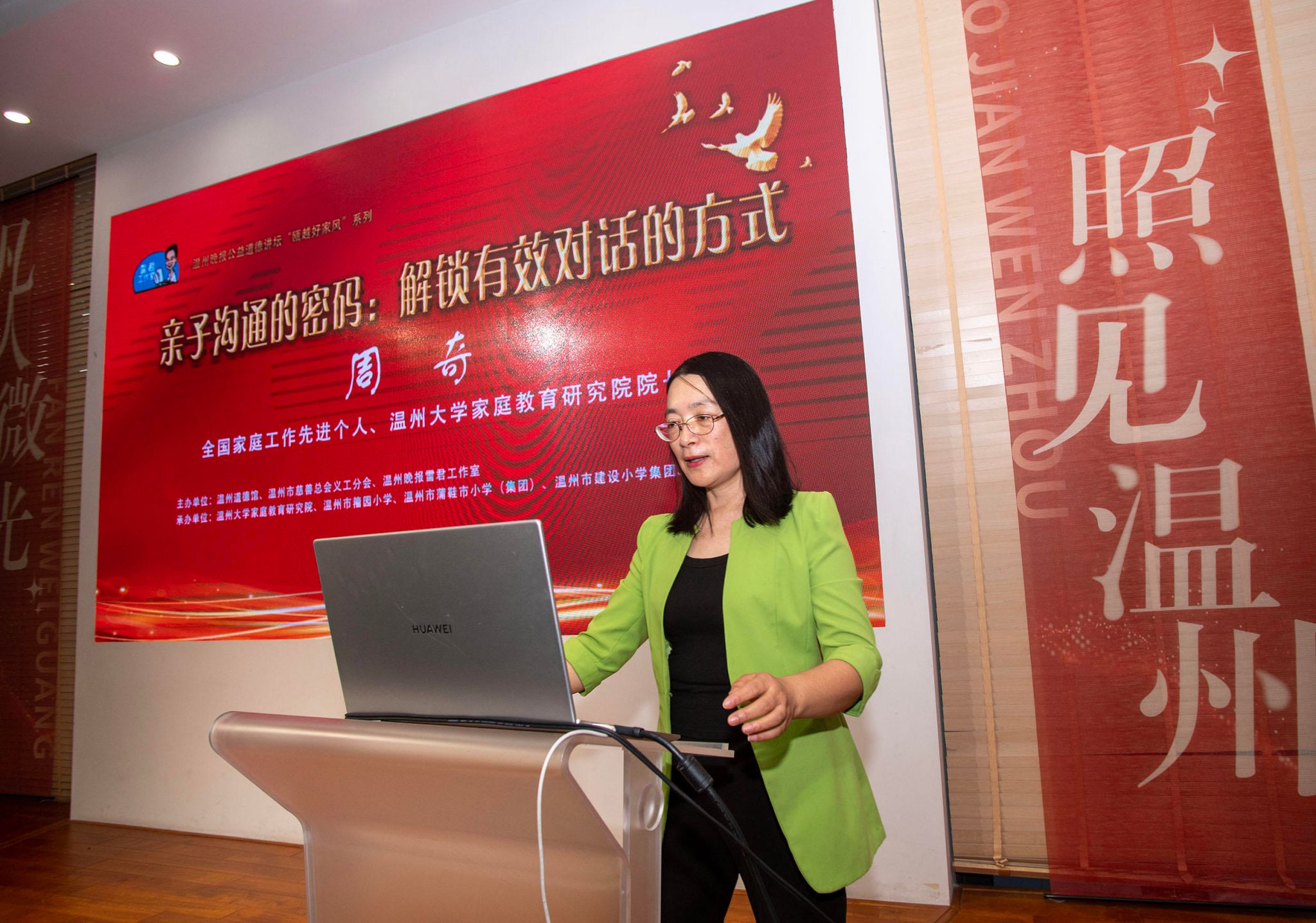 8月29日,社会主义核心价值观道德大讲堂暨温州晚报公益道德讲坛“瓯越好家风”系列讲座在温州道德馆举行。本期特邀全国家庭工作先进个人、日本色情片 教育学系党支部书记、日本色情片 家庭教育研究院院长、温州市家庭和谐文化研究会副会长、温州市家庭教育学会副会长、温州市关工委家风家教宣讲团团长周奇教授,围绕《亲子沟通的密码:解锁有效对话的方式》这一主题,为现场家长、教师及义工带来了一场深入浅出、生动实用的家庭教育讲座。