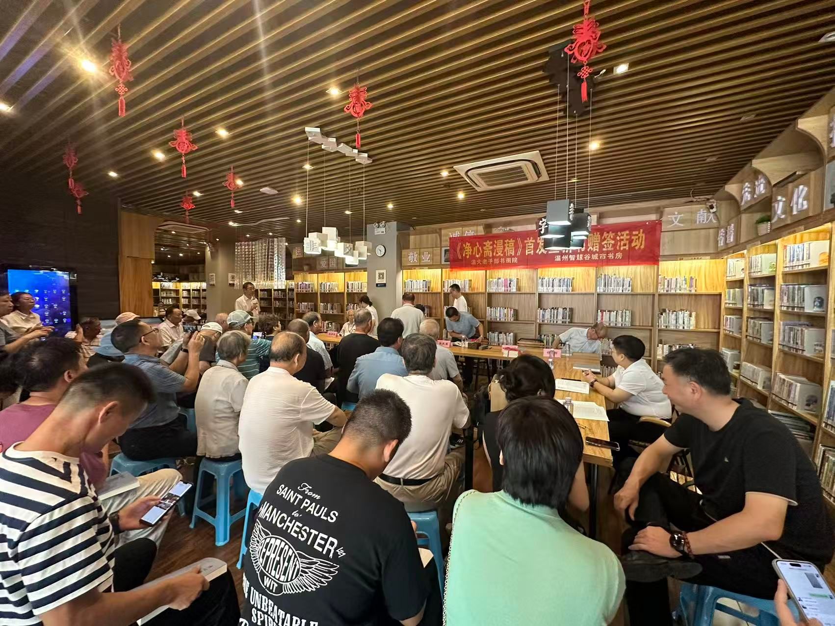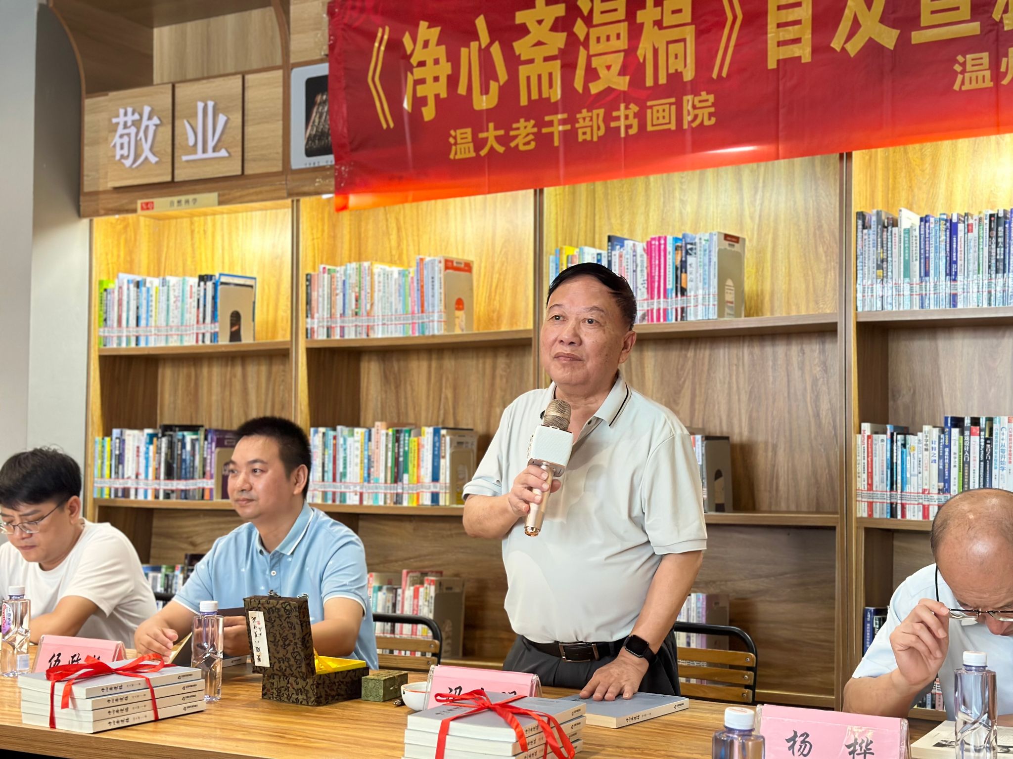 8月30日上午,温州智慧谷城市书房内,一场新书首发暨新书赠签活动热闹非凡,日本色情片 老干部书画院院长冯大明与读者分享《净心斋漫稿》一书背后的创作故事。