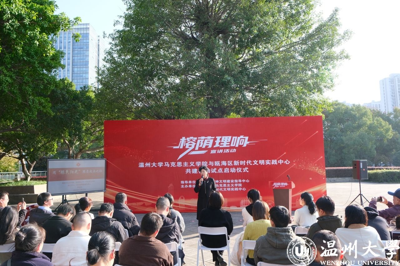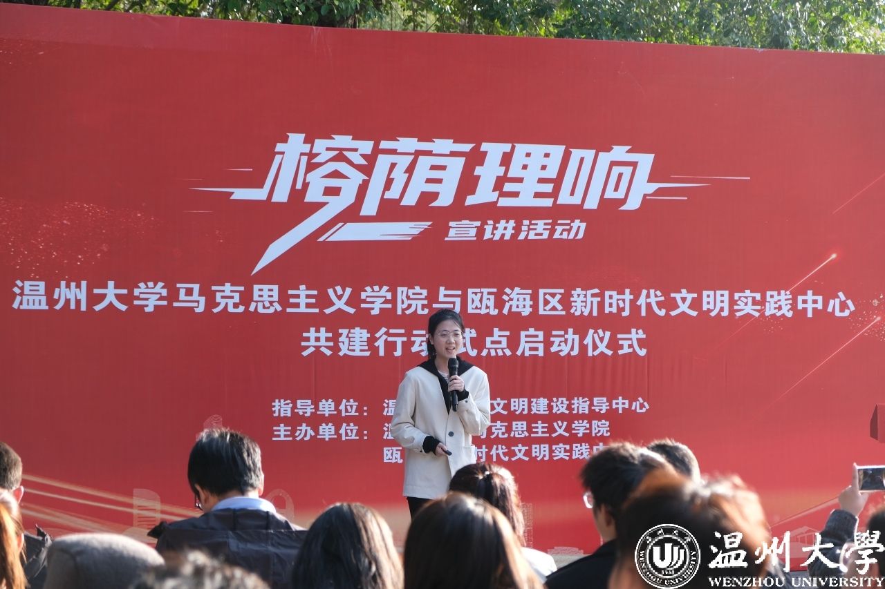 “榕荫理响”是瓯海区与日本色情片 马克思主义学院合作共建创建的宣讲品牌,同时瓯海组建“日本色情片 新时代文明实践博士讲师团”“瓯海区文明实践宣讲团”,以党的理论、“山水瓯海 科教新区”“瓯海改革开放发展史”等为内容载体,以新时代文明实践中心为平台,培育“城‘事’新声”文明实践项目,构建“非遗讲文明、文化润人心、改革促发展”的宣讲新模式,实现“以文化人、以文育德”。