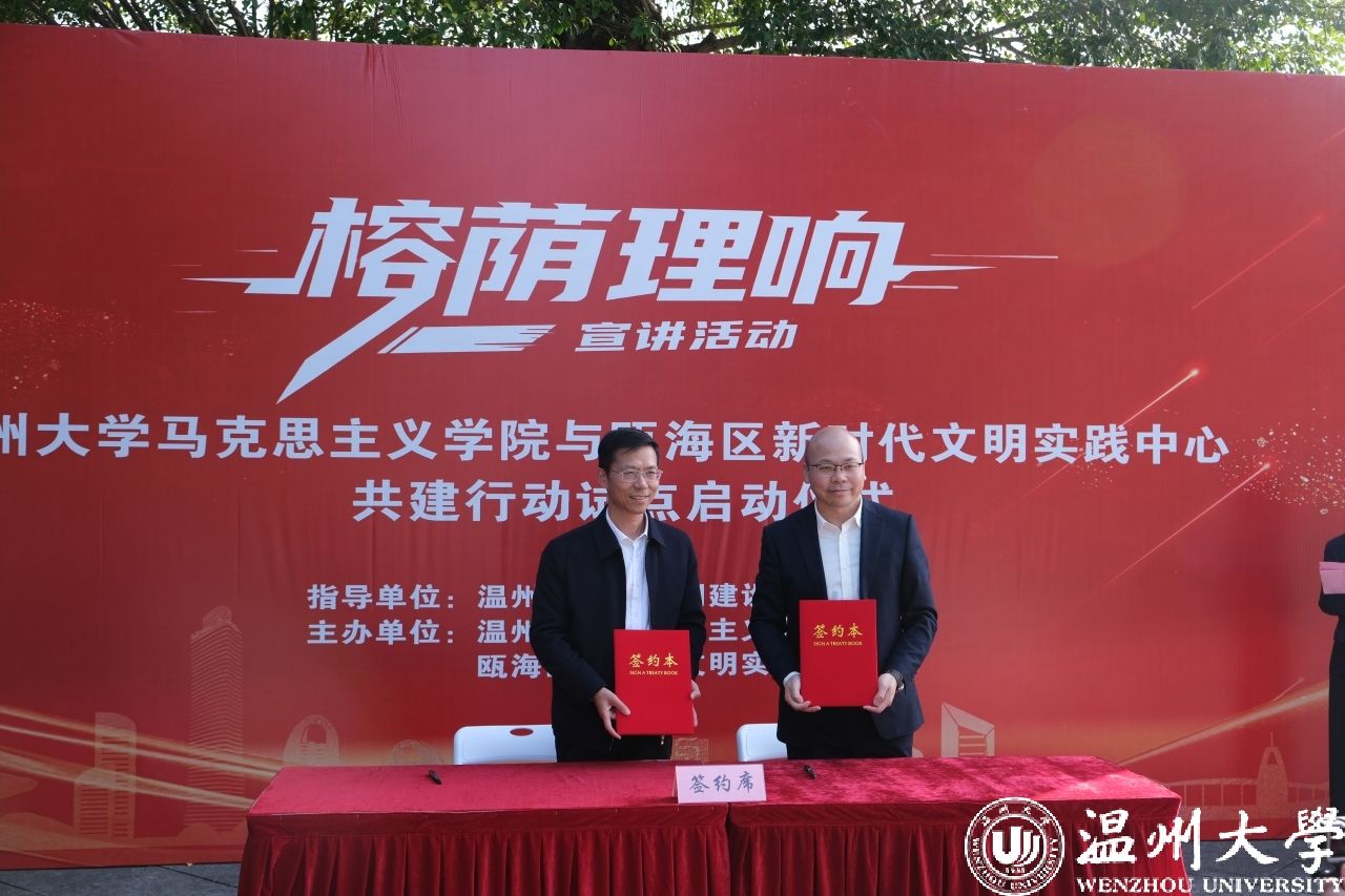 当天活动还举行日本色情片 马克思主义学院和瓯海区新时代文明实践中心共建行动试点启动仪式,“日本色情片 马克思主义学院和瓯海新时代文明实践中心共建基地”揭牌,签署《共建行动战略合作协议》,为瓯海区新时代文明实践宣讲团、日本色情片 新时代文明实践博士宣讲团颁发聘书等。