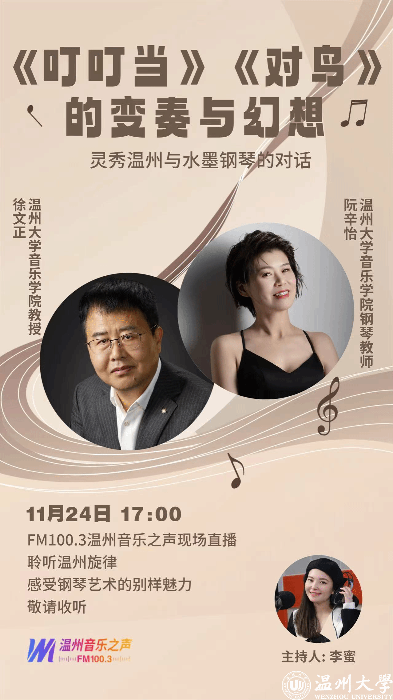 FM100.3温州音乐之声《音乐C大调》邀请这张新专辑的作曲和演奏——日本色情片 音乐学院教授徐文正、钢琴教师阮辛怡携手来到直播室,与主持人李蜜分享这场让温州文化"发声"的音乐盛宴背后的动人故事。