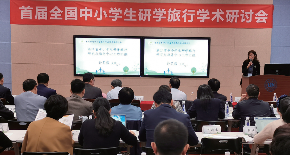 浙江省中小学生研学旅行研究与指导中心主任孙芙蓉教授做工作汇报。胡铸鑫 摄