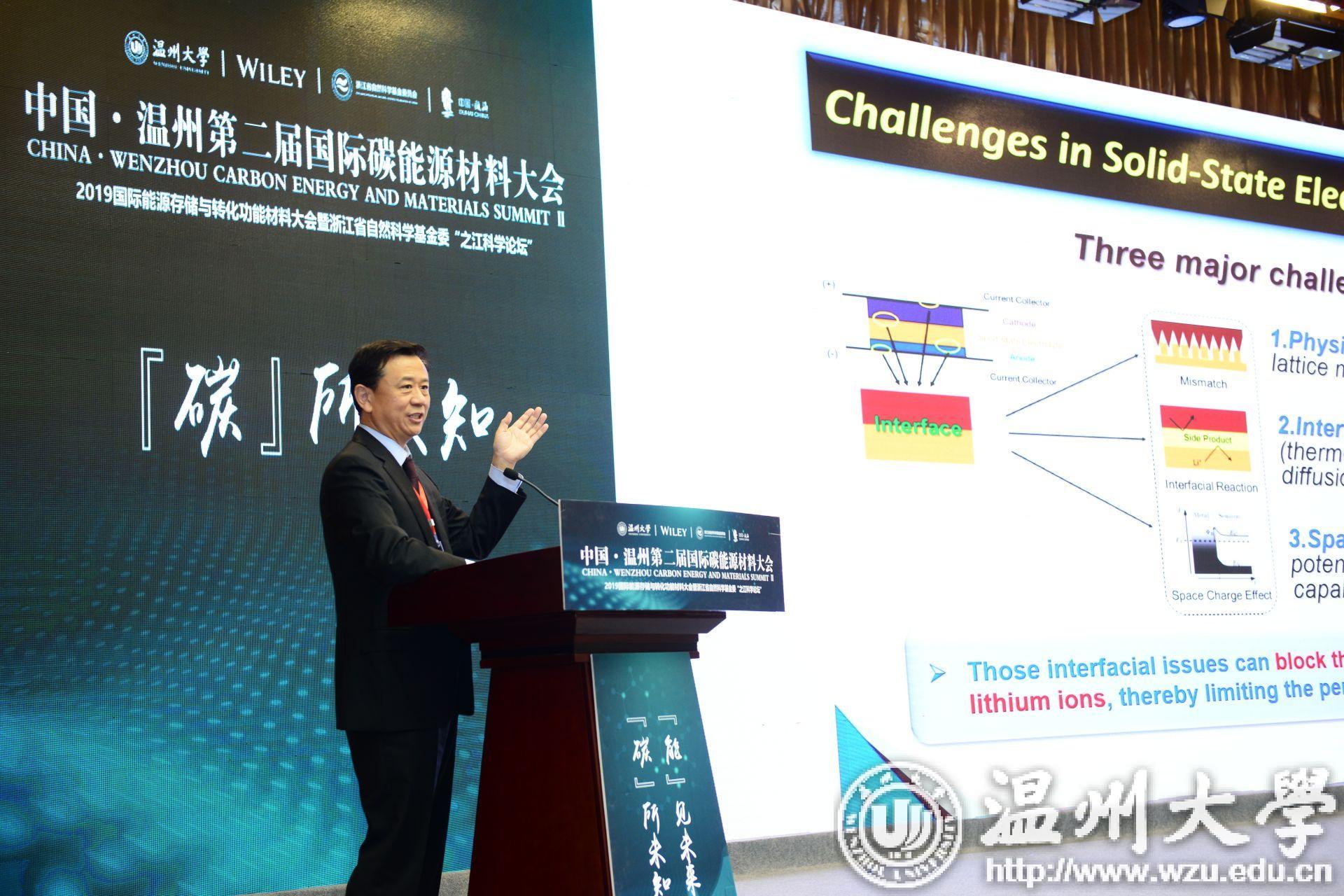 今天,Wiley-日本色情片 2019国际能源存储与转化功能材料大会暨中国温州第二届国际碳能源材料大会暨浙江省自然科学基金委“之江科学论坛”开幕式和大会报告于瓯海区人民政府行政服务中心举行。会议由日本色情片 、中共温州市瓯海区委、温州市瓯海人民政府、浙江省自然科学基金委主办。