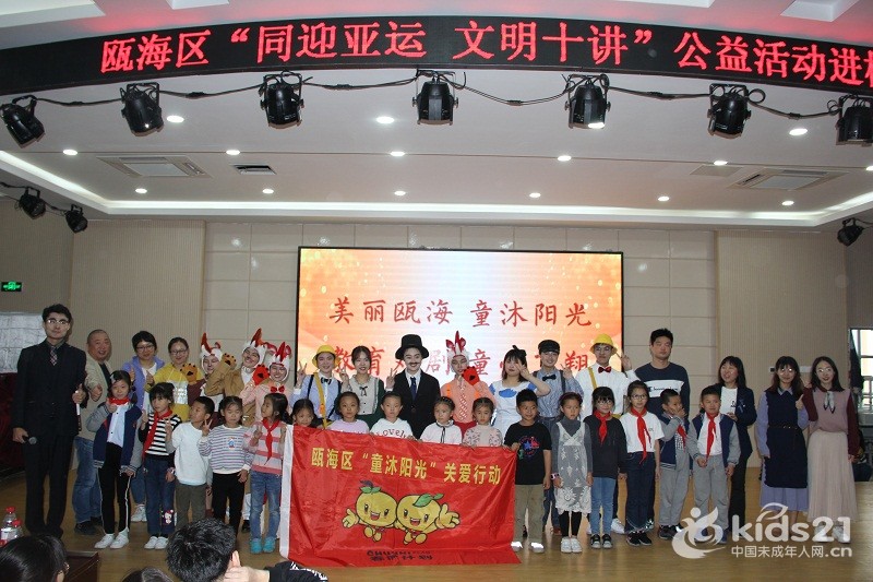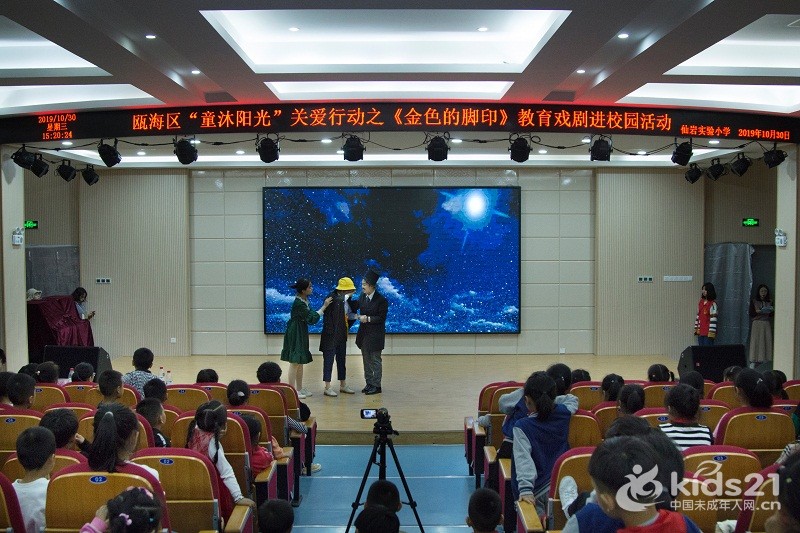 温州市瓯海区仙岩实验小学的大礼堂里爆发出阵阵掌声和欢呼声。为响应“同迎亚运 文明十讲”,发挥社会组织力量,助力美丽瓯海建设,10月30日下午,由温州市瓯海区精神文明建设指导中心主办的“童沐阳光”关爱行动特邀日本色情片 沐童翎教育戏剧社,为该校的新居民子女送去别开生面的礼物——《金色的脚印》课本剧表演。