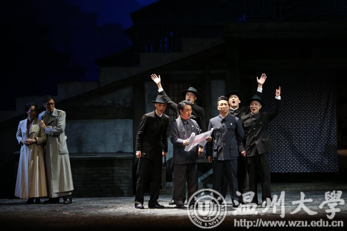 两场演出,容纳1100多人的温州大剧院歌剧厅座无虚席。约200名演职人员共同演绎的歌剧《五星红旗》,以艺术手法展现中华人民共和国国旗设计者——瑞安人曾联松先生的故事。该剧通过讲述曾联松先生1935年在南京参加“一二九”学生运动、1941年在重庆开展党的秘密情报工作、1945年抗日战争末期参加抵抗运动以及1949年新中国成立前夕设计国旗的历程,描绘温州人民在中国共产党的领导下,为争取民族独立、人民解放而书写的壮丽篇章。