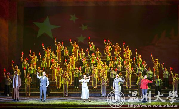 “瓯江水”“江南儿女”“瑞安师范学校”……歌剧展现了一幅幅富有温州元素的生活场景,从参加学生运动,到接触到革命,认识中国共产党,到完成党的使命“绘制国旗”图案,“曾联松”成长的历程与“国旗”的诞生紧密联系在一起:“五角星”“红色”等元素都曾在他心中留下了不可磨灭烙印。而年轻一代恰恰缺失了对这些革命事迹的了解与认识。