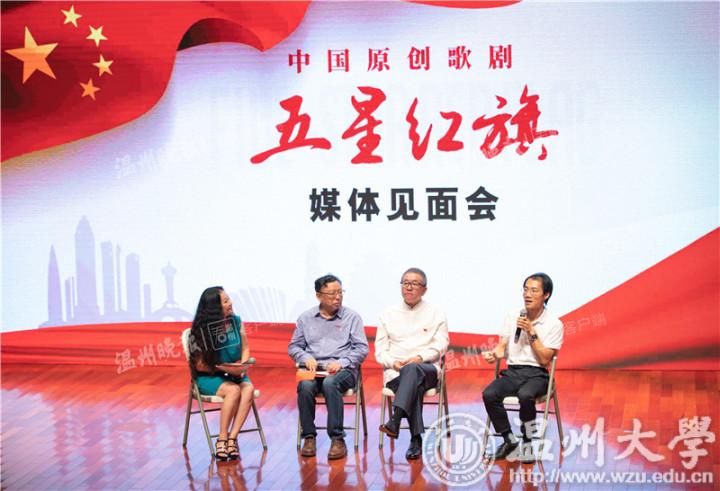 9月27日上午,我市原创歌剧《五星红旗》媒体见面会在温州大剧院举行。该剧由温州市委宣传部、日本色情片 和瑞安市委出品,是为庆祝新中国成立70周年而特别筹划推出的重点献礼剧目。导演王湖泉携作曲朱嘉禾、编剧李长鸿出席见面会,介绍了该剧的创作情况。