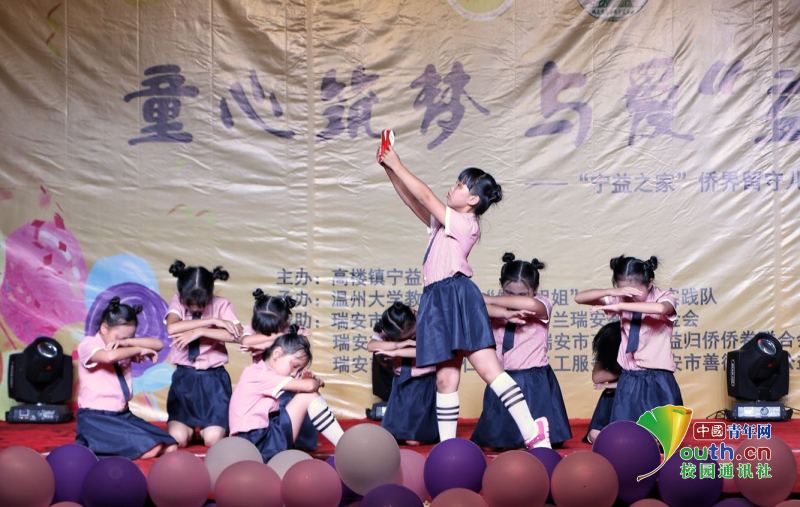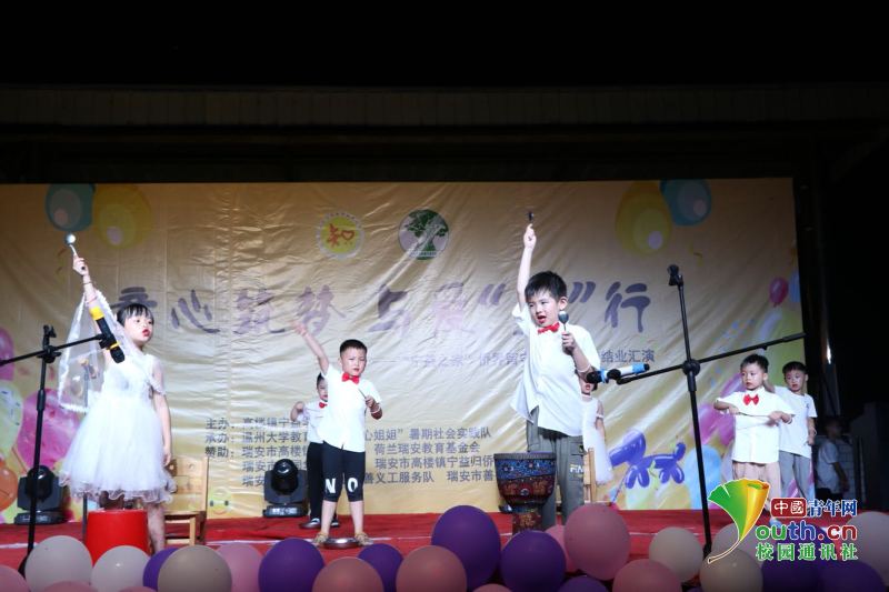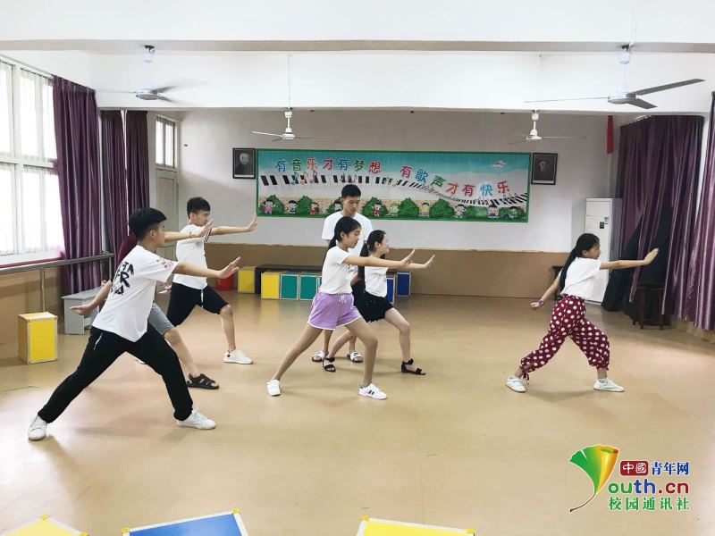 图为夏令营汇报表演时学生舞蹈“山里山外”。中国青年网通讯员 沈冲摄