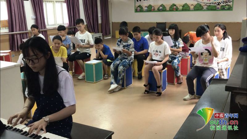 图为知心姐姐在教学生钢琴弹唱。中国青年网通讯员 汪杭奕 摄
