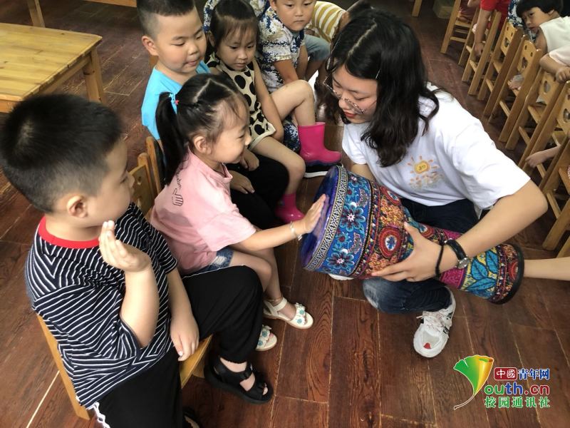 图为幼儿园小朋友第一次触碰非洲鼓。中国青年网通讯员 徐夏 摄