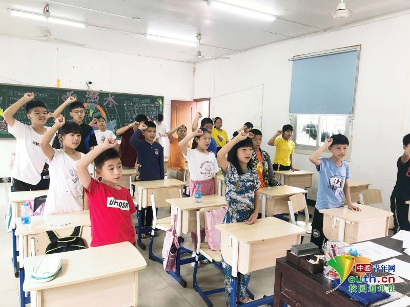 图为学生学习宪法相关知识并宣誓。中国青年网通讯员 许燕吉 摄