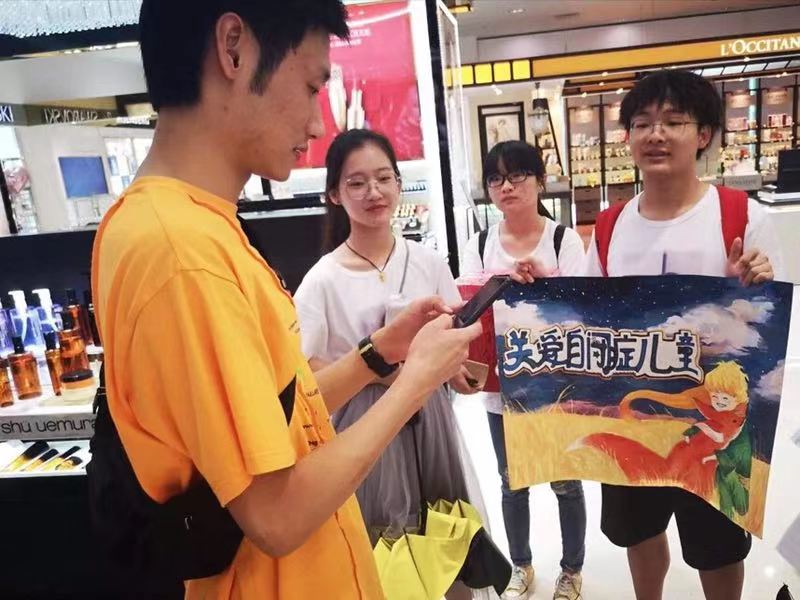 七年来,“心翼”实践队致力于优化自闭症孩子的生存环境,保障弱势儿童的成长利益。为了给来自“星星的孩子”送去社会的温暖,实践队员们开展了义卖、募捐活动。“也许我们无法完全打开他们的心扉,但我们能让他们感受到除了父母、老师之外的温暖,感受到这个社会对他们的温暖,能让社会对他们多些了解和接纳。”队员胡潘栋在募捐中向路人介绍道。