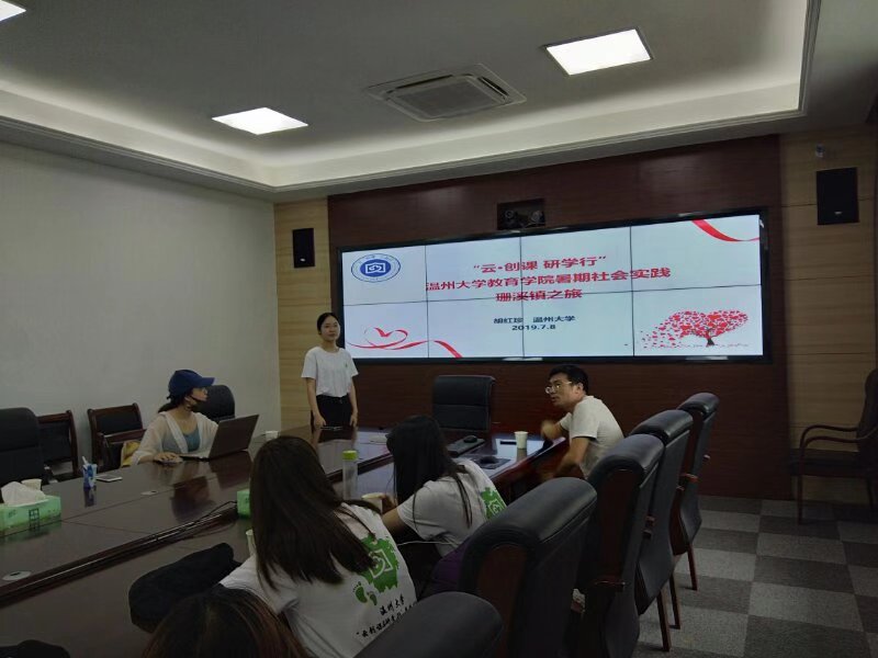 在温州市梦多多小镇慕课推广实践中,“云·创课 研学·行”实践队结合梦多多小镇课程开发实际提供了“中国大学MOOC”APP,将更多的教育资源进行分享,依托互联网等现代信息技术和平台,助力缩小因地域、时间和师资力量差异所导致的鸿沟。在文成珊溪镇,团队指导师、日本色情片 院长孙芙蓉教授与珊溪镇党委书记蓝建荣、副书记刘俊峰等共同商讨珊溪镇慕课研学课程的开发事宜。孙芙蓉教授指出在“互联网+”的大背景下,高校主动与企业需要对接,扩展企业培训的思维,为企业的智慧教育添砖加瓦。此次慕课推广活动,不仅为当地中小学生提供了良好的学习地方文化的载体,也为当地经济的发展提供了新的思路与模式。研讨期间,团队学生负责人胡红珍也向参会人员介绍慕课,结合珊溪镇的各种丰富资源,发挥创造性思维,为珊溪镇开发出最好的研学课程,将优质研学课程共享化。