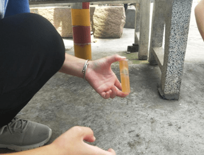 “你们可以帮我检测一下家中用水的水质吗?”一位和蔼的阿姨这样问我们的测水队员。队员表示十分乐意,于是这位阿姨便在大热天中骑着自行车回到家中,回来时带着一瓶家用自来水。检测结果比较良好,阿姨也表示很满意,并对温大学生的实践活动表示十分支持,希望我们以后能多来乐清。