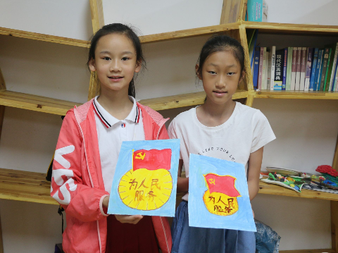 实践队充分利用市党群服务中心的红色背景,开设温州红色记忆特色课程,讲授历史故事、时政知识。手工课上,孩子们用画笔勾勒出对祖国深情的爱意,一笔一画描绘着党徽、温州和平解放谈旧址--景德寺、温州革命烈士纪念馆等红色印记。孩子们在实践队队员们指导下,洗笔、调色、构图,迫不及待地喊着:“老师,快教我画镰刀! ”画笔烙下的,不仅是红与黄组成的党徽、国旗,更是一颗在孩子们心中深种的爱国种子。
