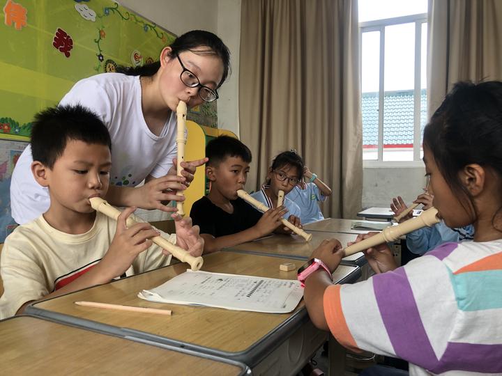 南岳小学后塘校区的孩子们学笛子很投入